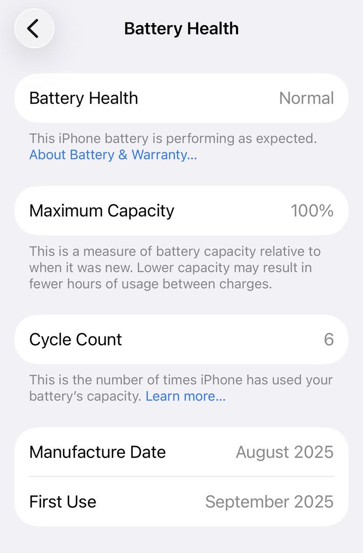 🔋 Battery: 100% (only 6 cycles)