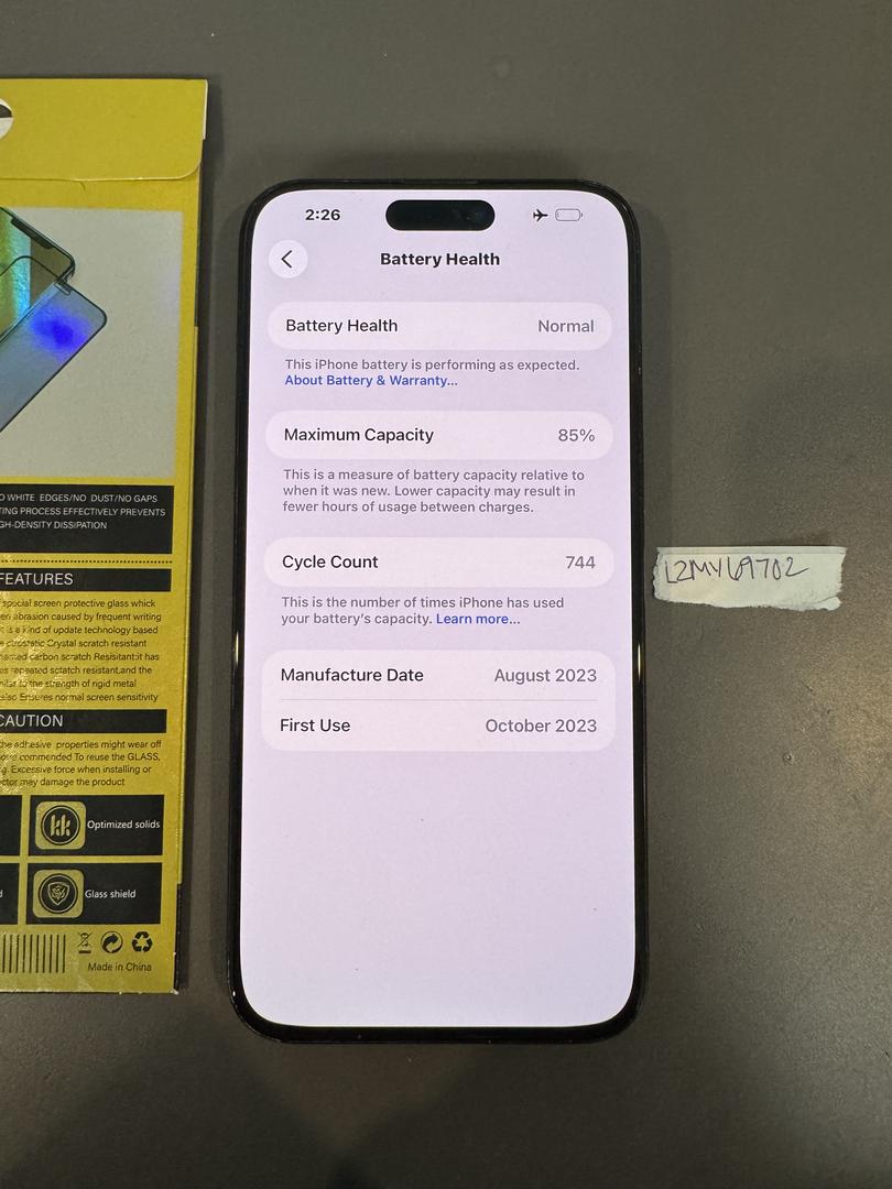 Scratches on device due to moderate usage. Screen has been replaced as stated in settings. Battery health is 85%. Works perfectly.
