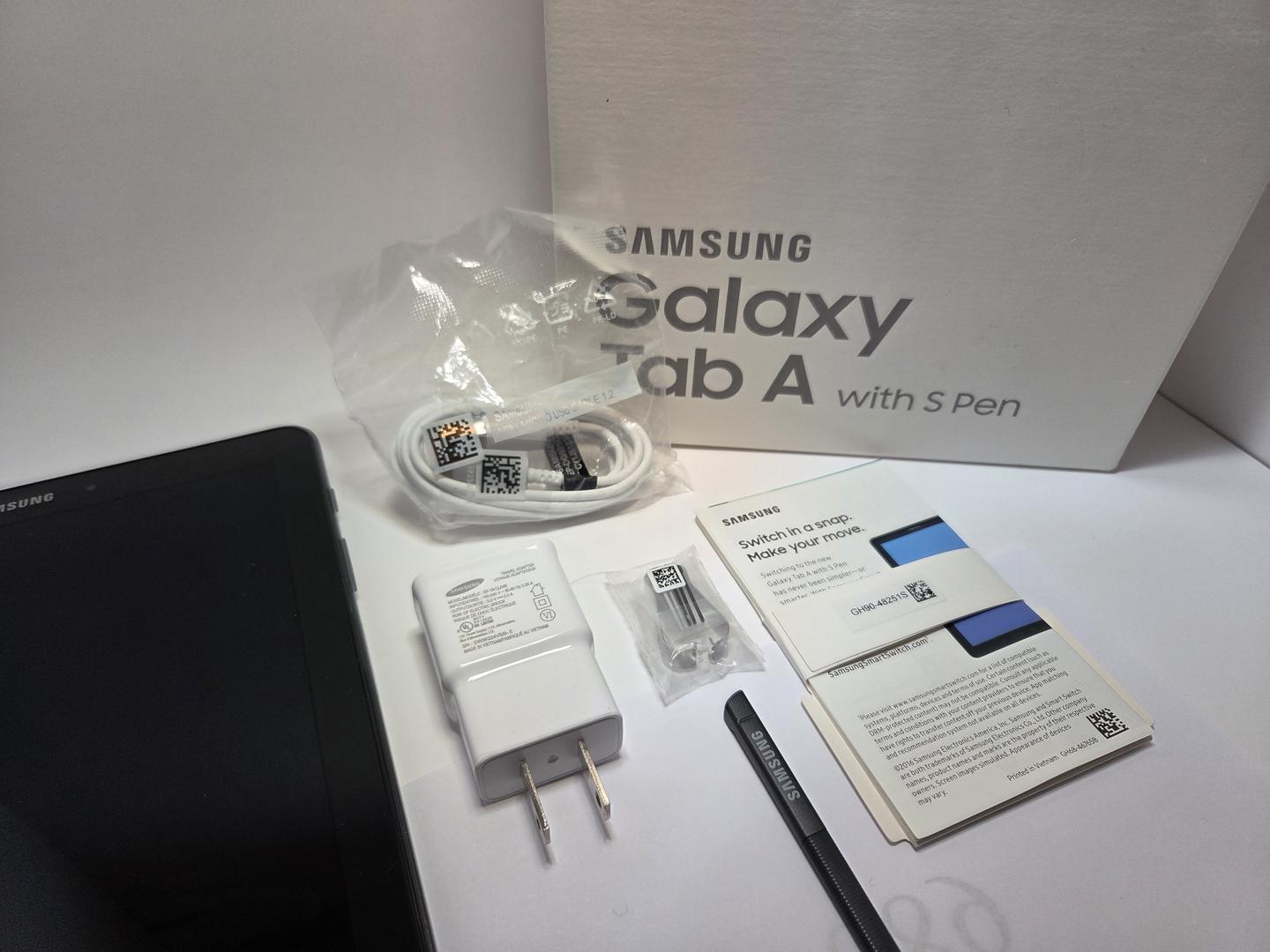 Samsung Galaxy Tab A with S Pen 10.1 with Original Box, official samsung charger 5v 2A and official samsung (microusb cable sealed in bag)