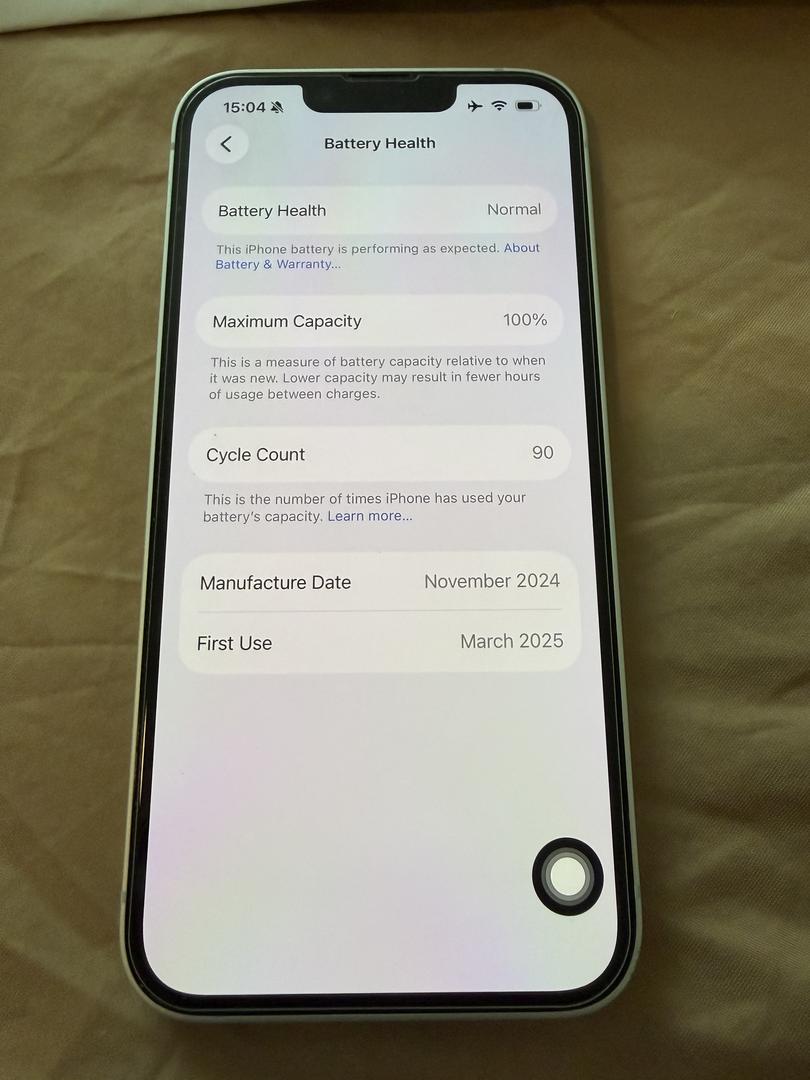 iphone 16e 100% battery health comes with original box and charger