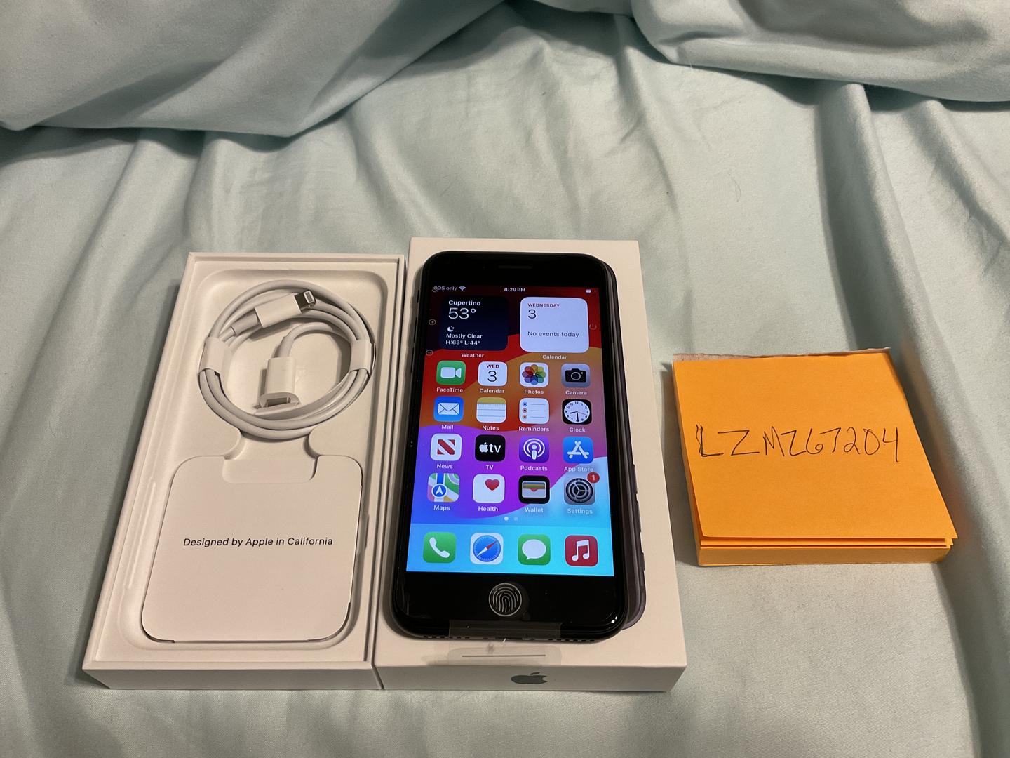 This phone was purchased on AT&T and was never used as a personal phone. Purchased for the phone line. It still has the factory plastic on it and comes with original box & new lightning cable. 100% battery health