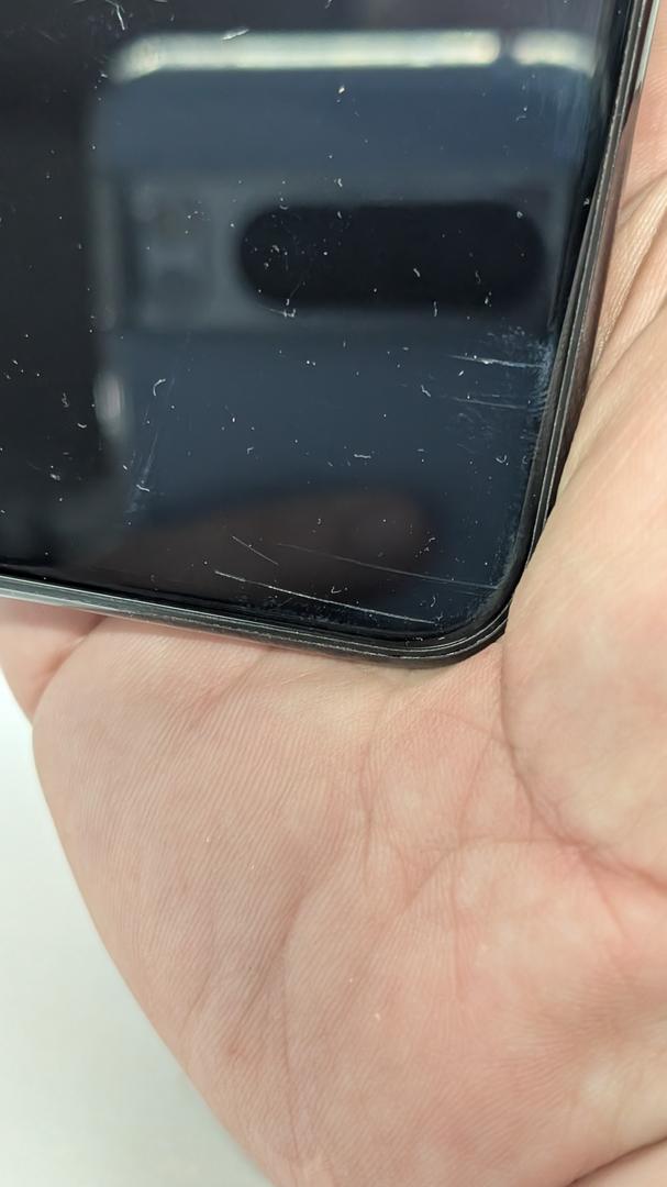 a few scratches on the screen. a scratch on one of the rear cameras (does not effect photos). Never cracked screen. Never had anything replaced. No major damage.