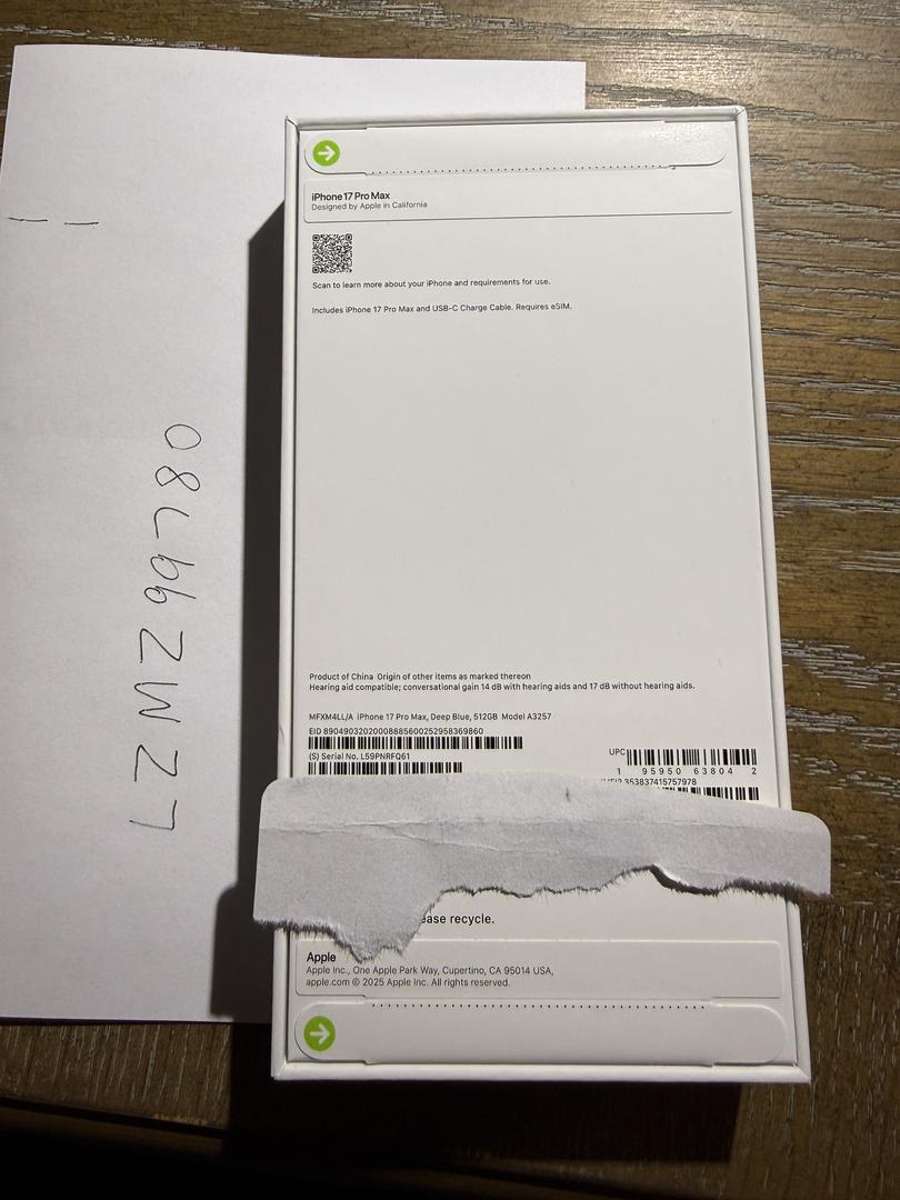 iPhone 17 Pro Max, Deep Blue, 512 GB Model A3257, New