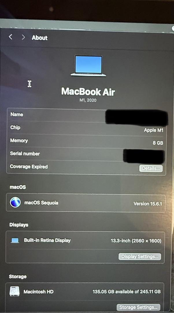 2020 M1 Macbook Air 13 inch display. Works completely fine I recently upgraded so I don’t want this sitting around. Will come with original box, port and charger.