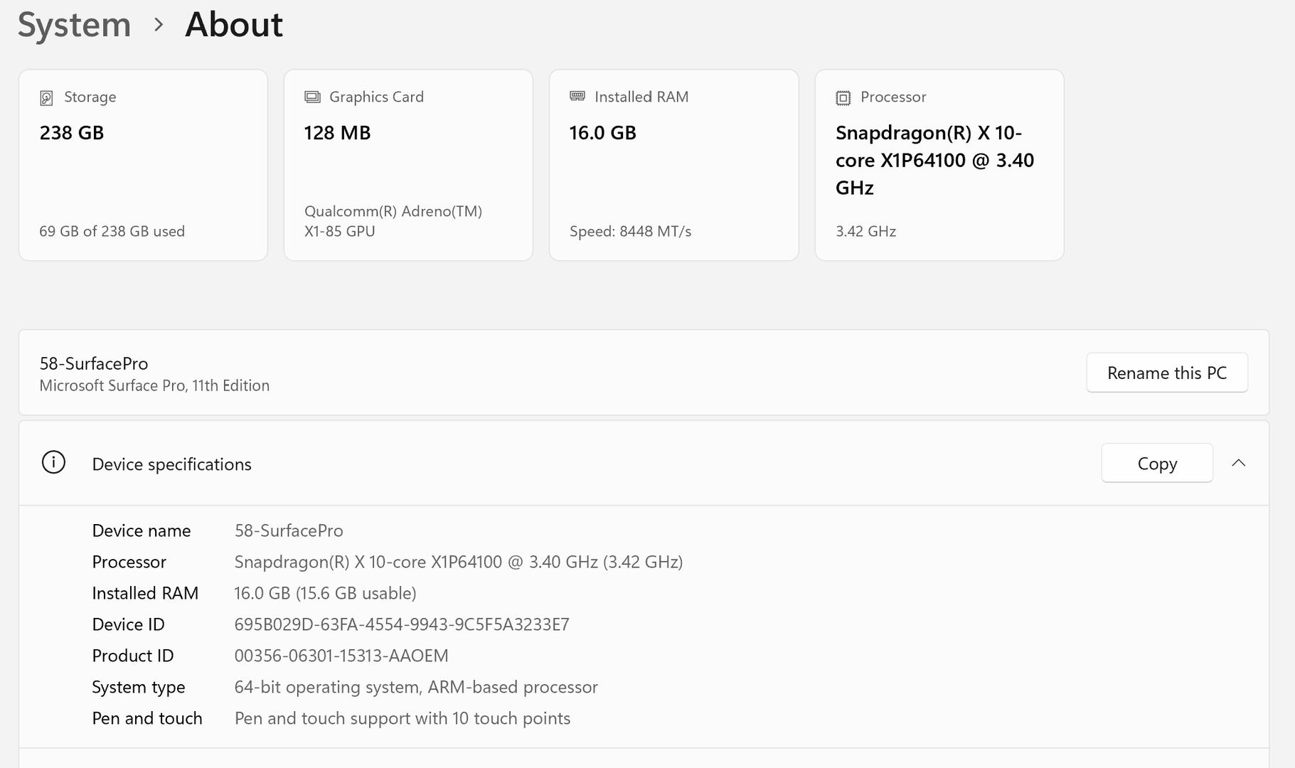 - CPU: Snapdragon X Plus 3.40GHz