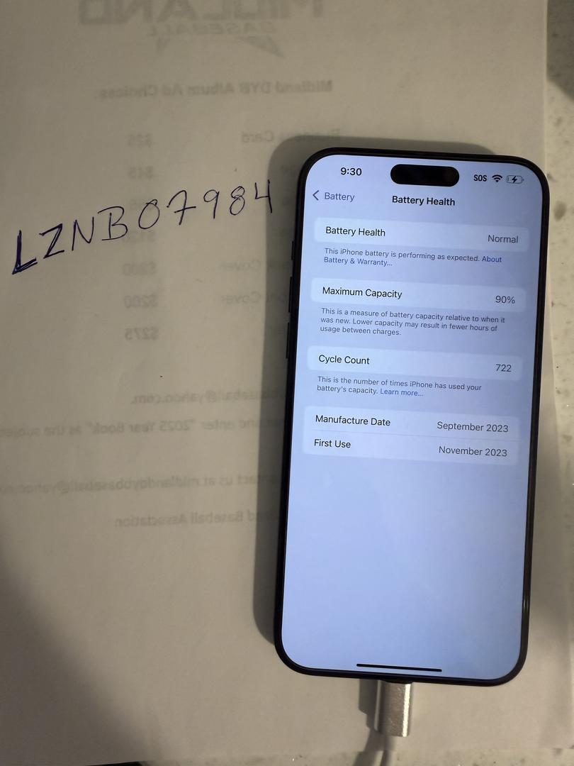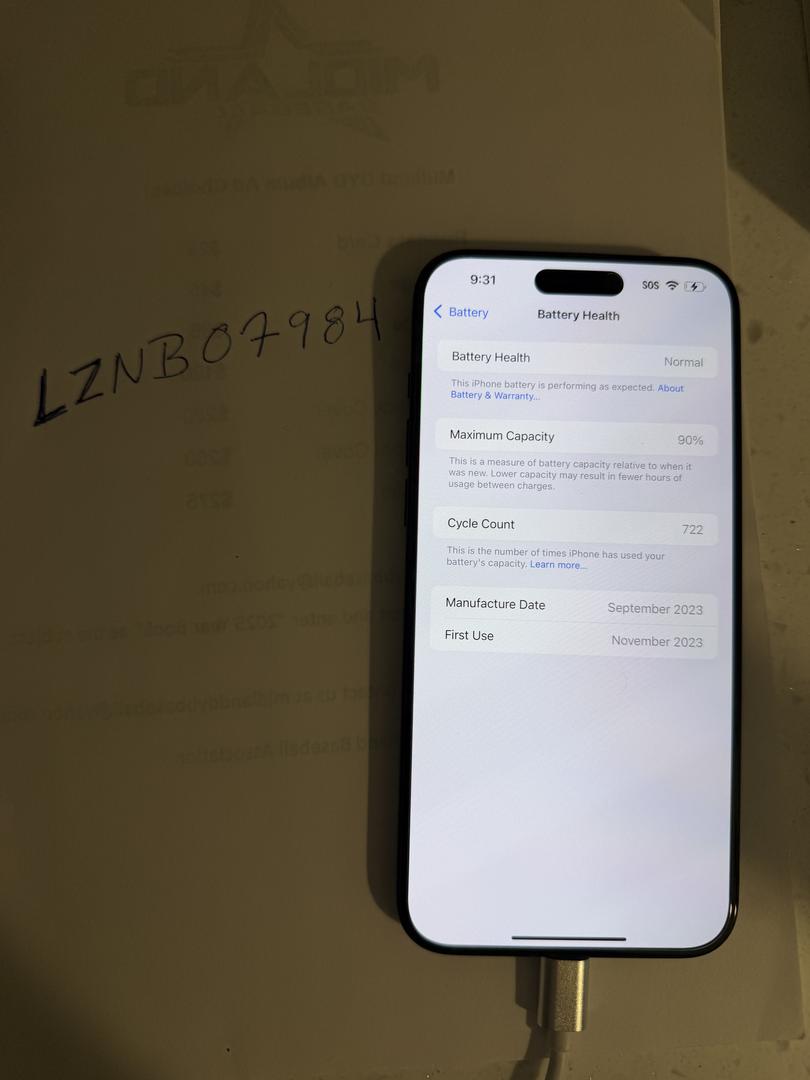 You will be getting an IPhone 15 Pro Max Unlocked 512GB in very good condition. Also comes with the box and the cord inside thatβs never been used. BATTERY LIFE IS 90% This has had a case on it since I purchase it. It comes with a new case that was bought a week before upgrading. It also comes with a charging cord as well as a privacy tempered glass screen protector. This was my personal phone and has never been worked on. You will have to sign for the package due to the amount. Thanks for looking!!! SHIPS WITHIN 24 HOURS OF CLEARED PAYMENT