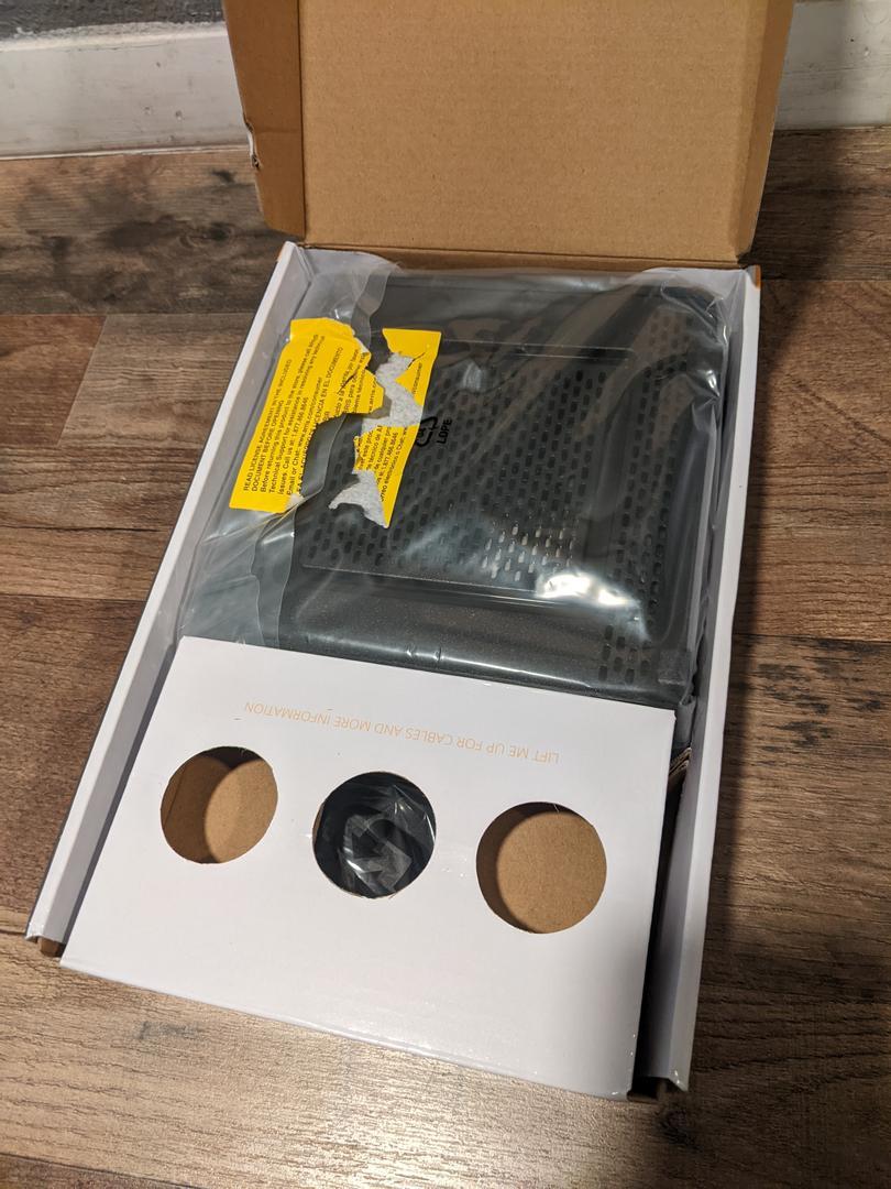 New, open box, return. Tested on my personal internet service for at least 24 hours. Modem has been factory reset and is ready to go.