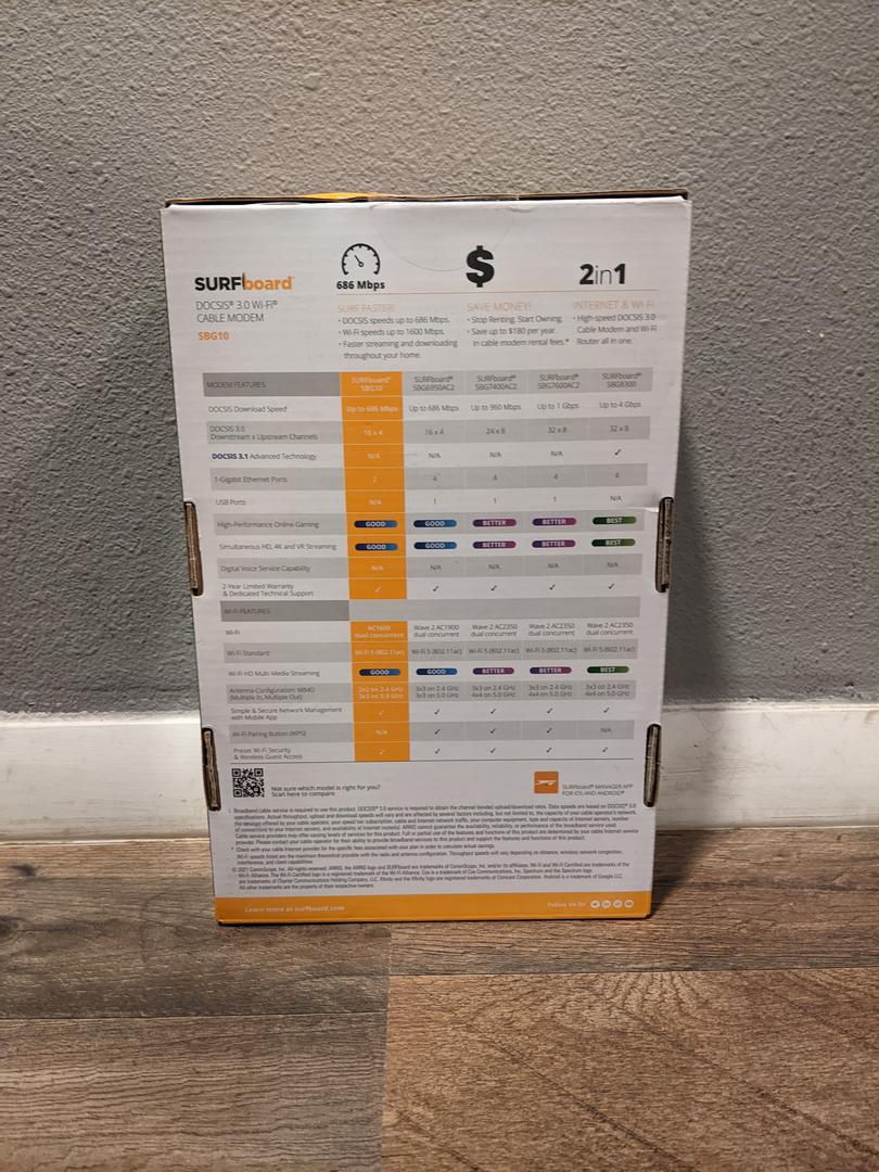 ARRIS SURFboard SBG10 DOCSIS 3.0 Gigabit Cable Modem & AC1600 WiFi 5 Router