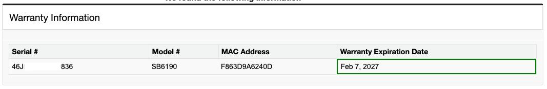 *** Arris Warranty through February 7, 2027 ***