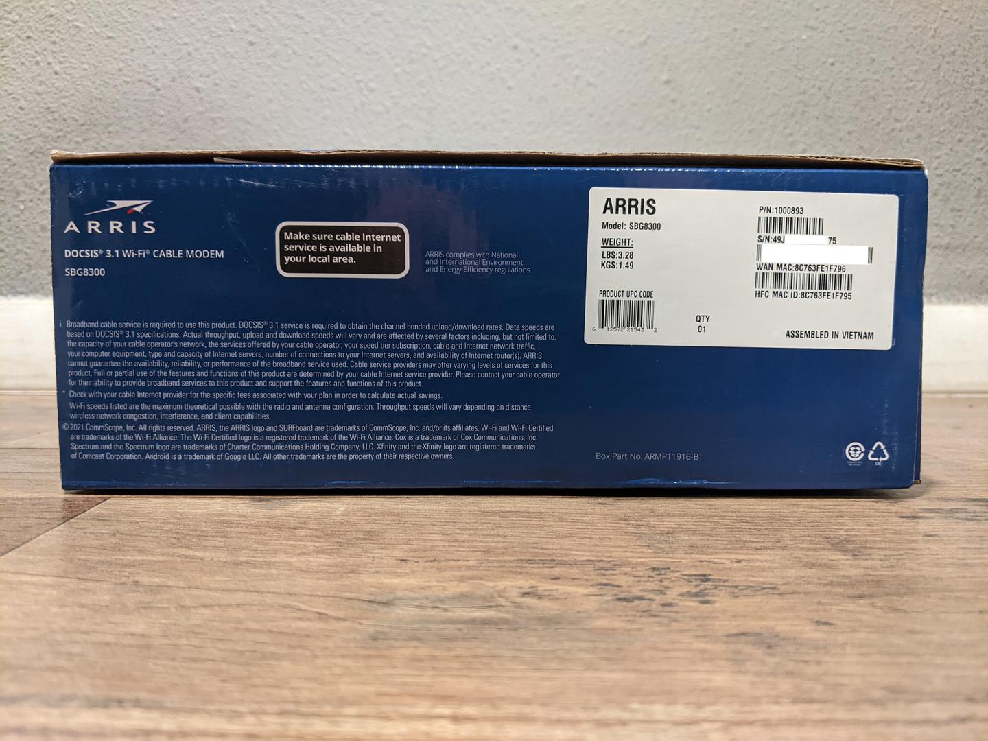 Arris SBG8300 DOCSIS 3.1 Cable Modem & WiFi 5 Router