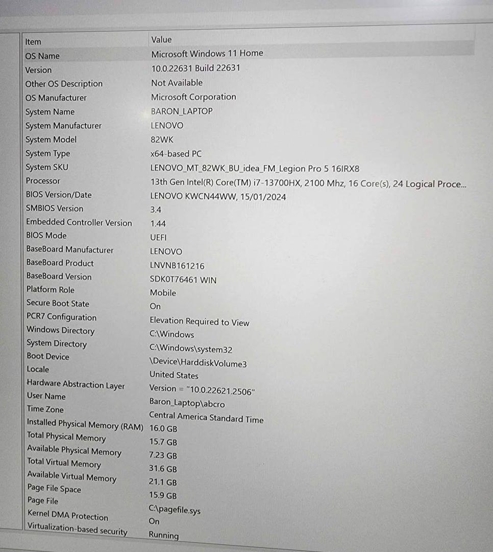 Lenovo Legion Pro 5i - Model 16IRX8