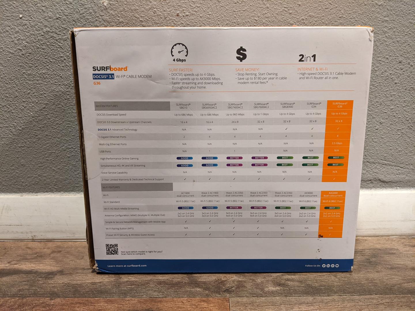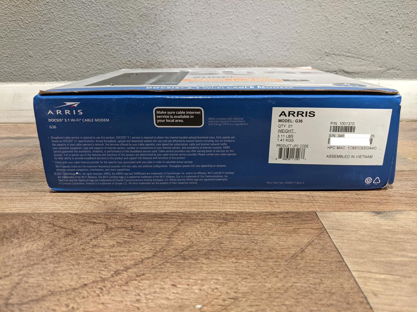 ARRIS SURFboard G36 DOCSIS 3.1 Gigabit Cable Modem & AX3000 WiFi 6 Router