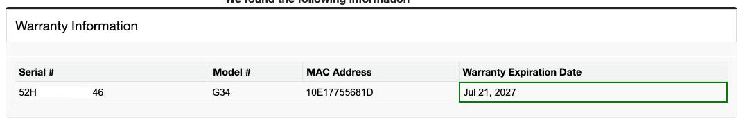 *** Arris Warranty through July 21, 2026 ***