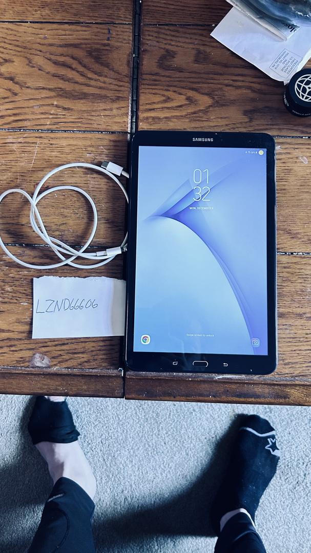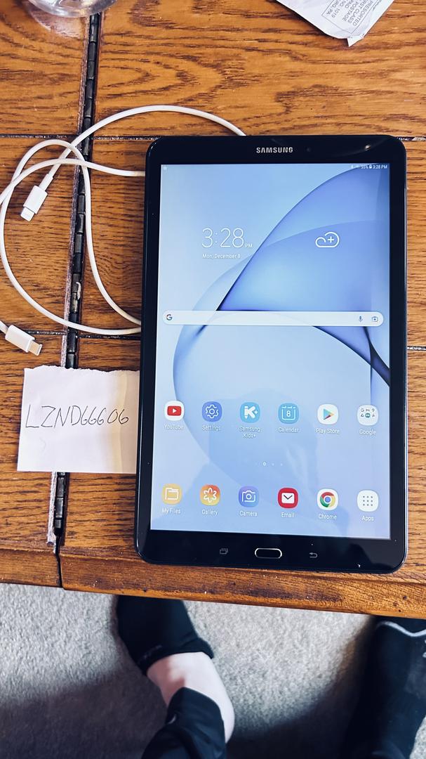 One like new Samsung Galaxy Tablet A. And a charging cable. ( there is not a scratch, big, dent or mark on this tablet and Swappa won’t me put Mint. Well look at the pics it’s been used maybe 12 time the processing is sharp as the looks, it IS MINT!)