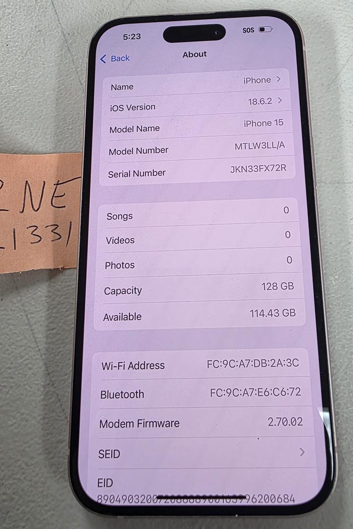 **84% BATTERY HEALTH*** Apple iPhone 15 128GB Pink Unlocked A2846