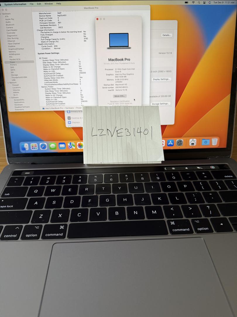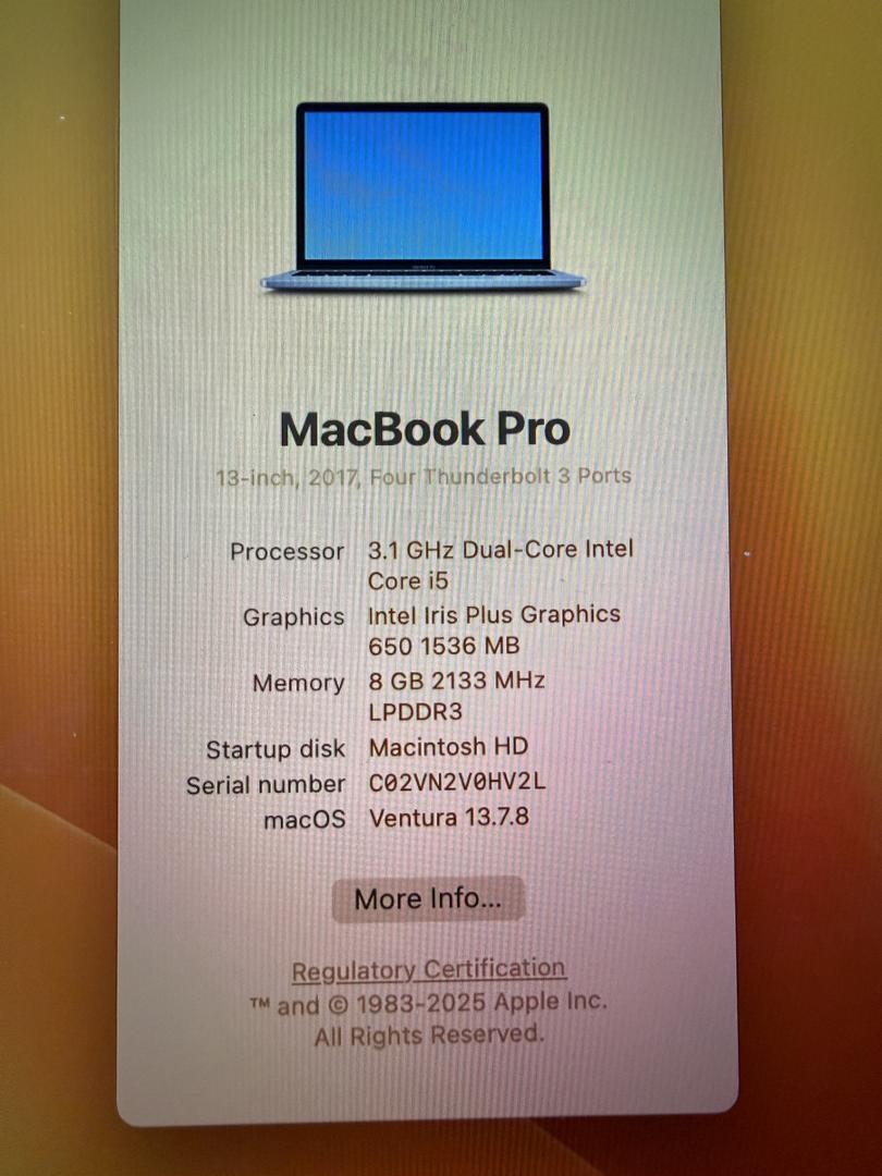 | MacBook Pro 2017 (13-inch, 512GB SSD, 16GB RAM) | Good Condition | Charger Included |