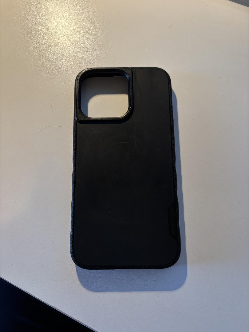 Small scratch in the upper-left quadrant of the screen (see attached photo). The phone currently has a Spigen screen protector installed, which hides the scratch a bit.