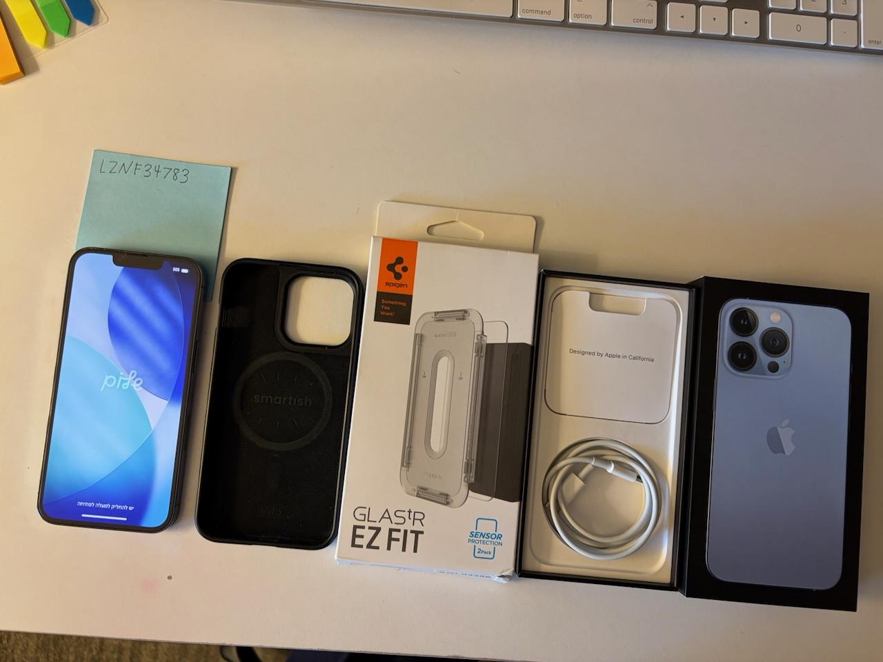 iPhone 13 Pro w/ original cable & packaging, Smartish MagSafe Case, Spigen screen protectors (x2)