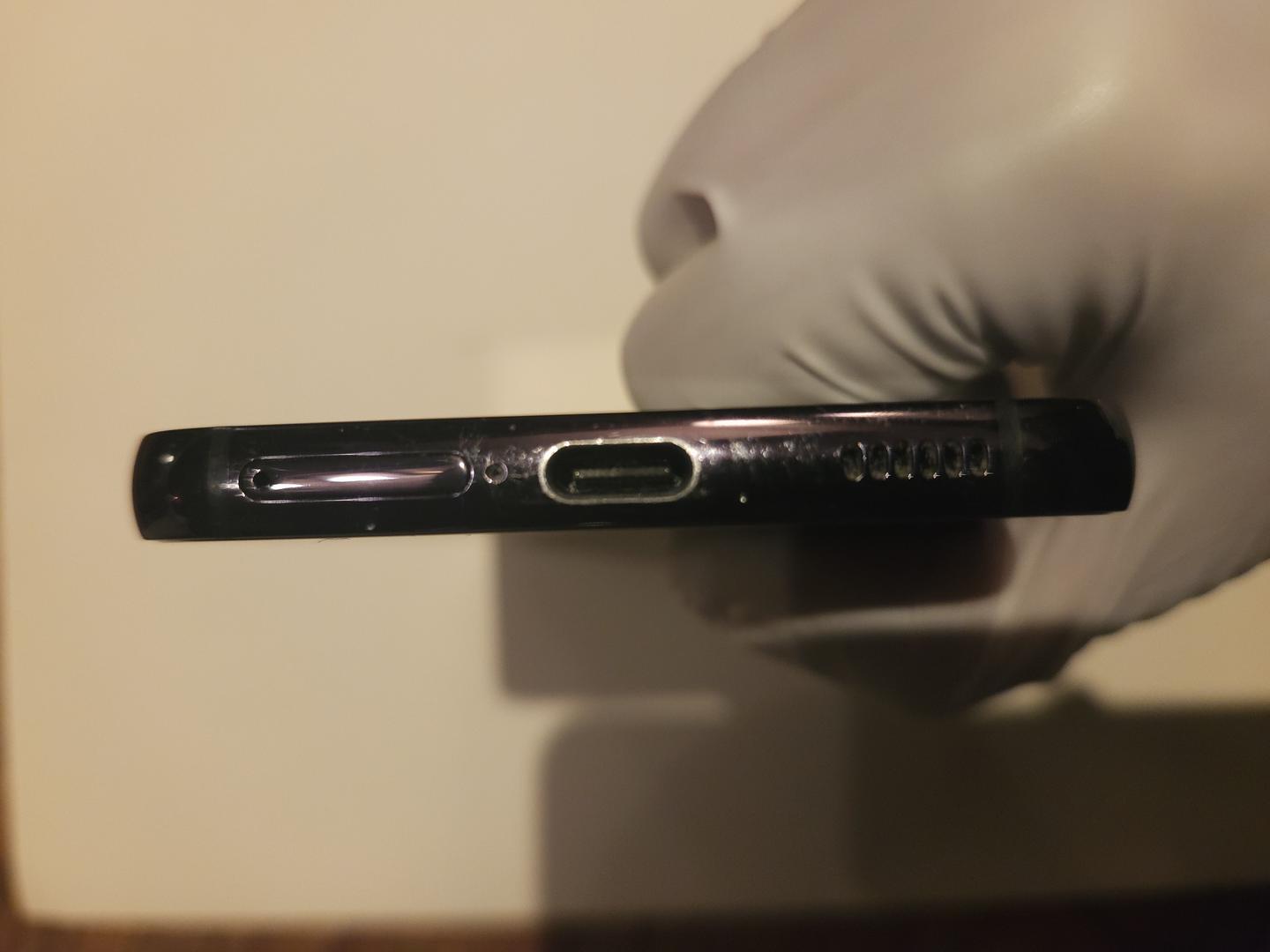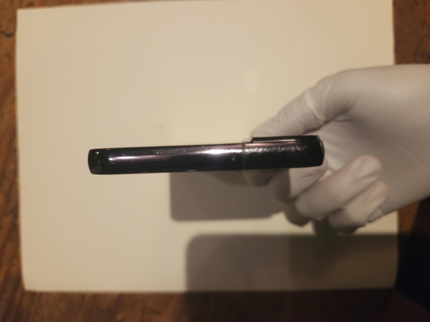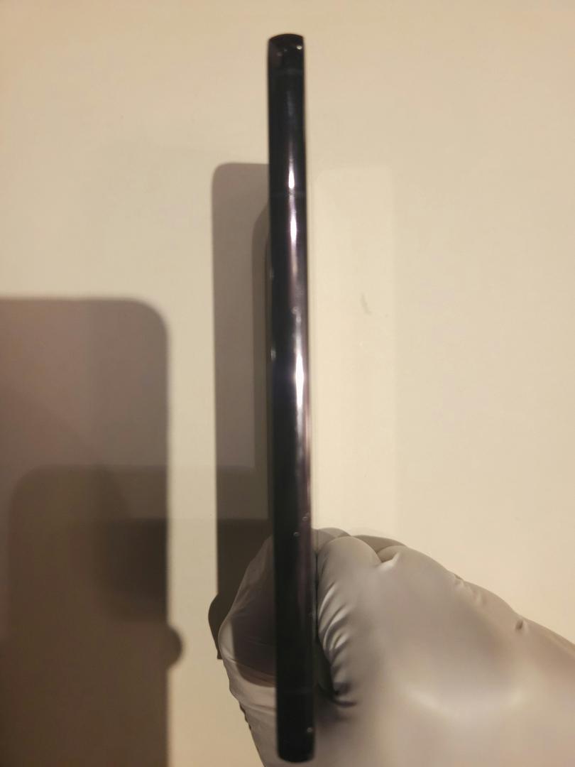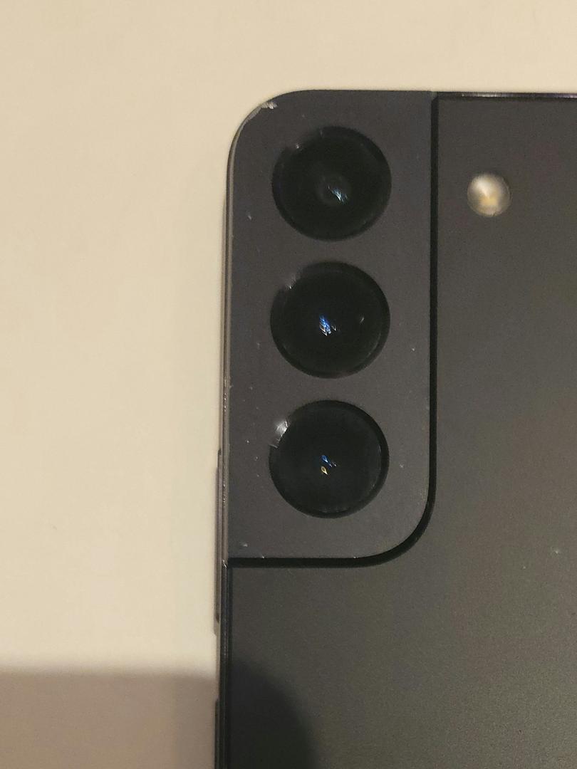 Small but noticeable scratch on upper left corner of back camera bump. Purely cosmetic, cameras work perfectly.