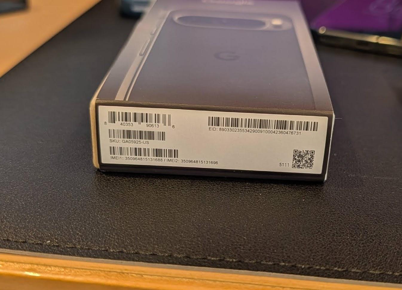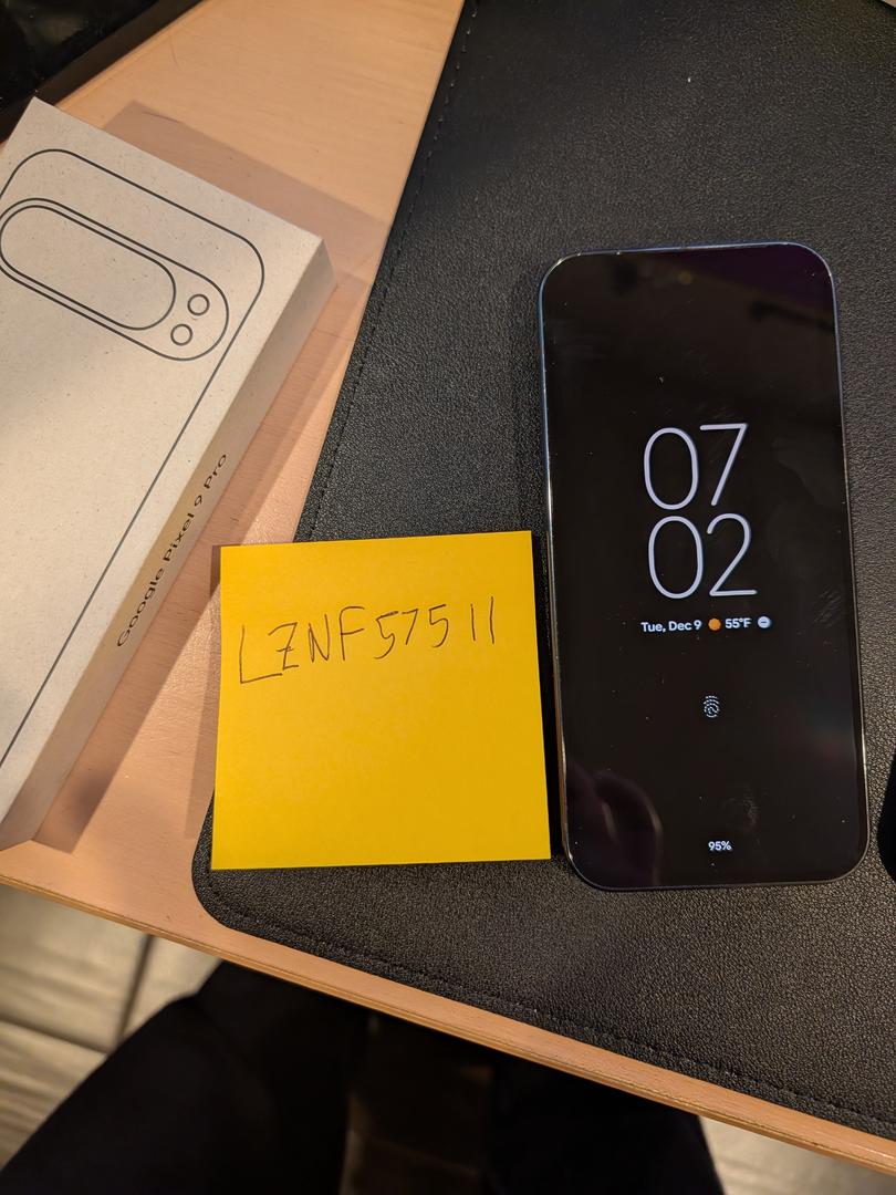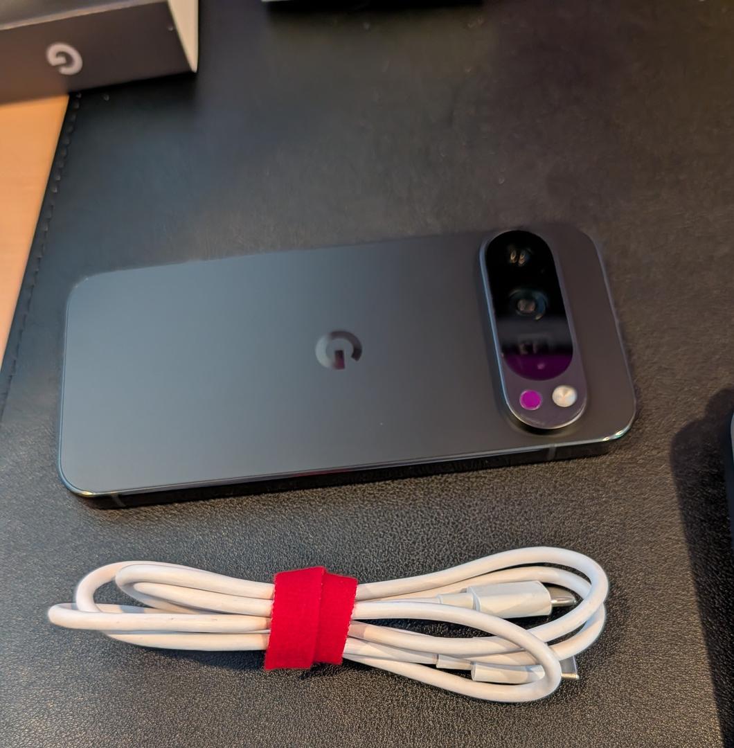Pixel 9 Pro, unlocked, 128GB, Obsidian. Includes the original box, USB C charging cable and a generic blue case. I purchased this phone direct from Google on April 2, 2025.