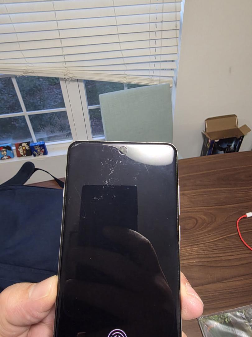 Can you include any more black screen pics of the phone to rule out any minor scratches? Hard to make out from the two posted pics...
