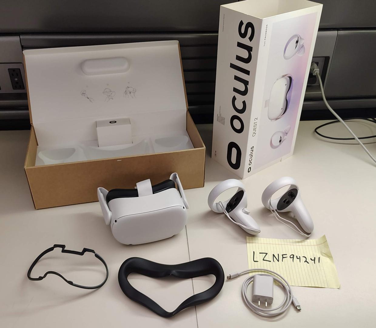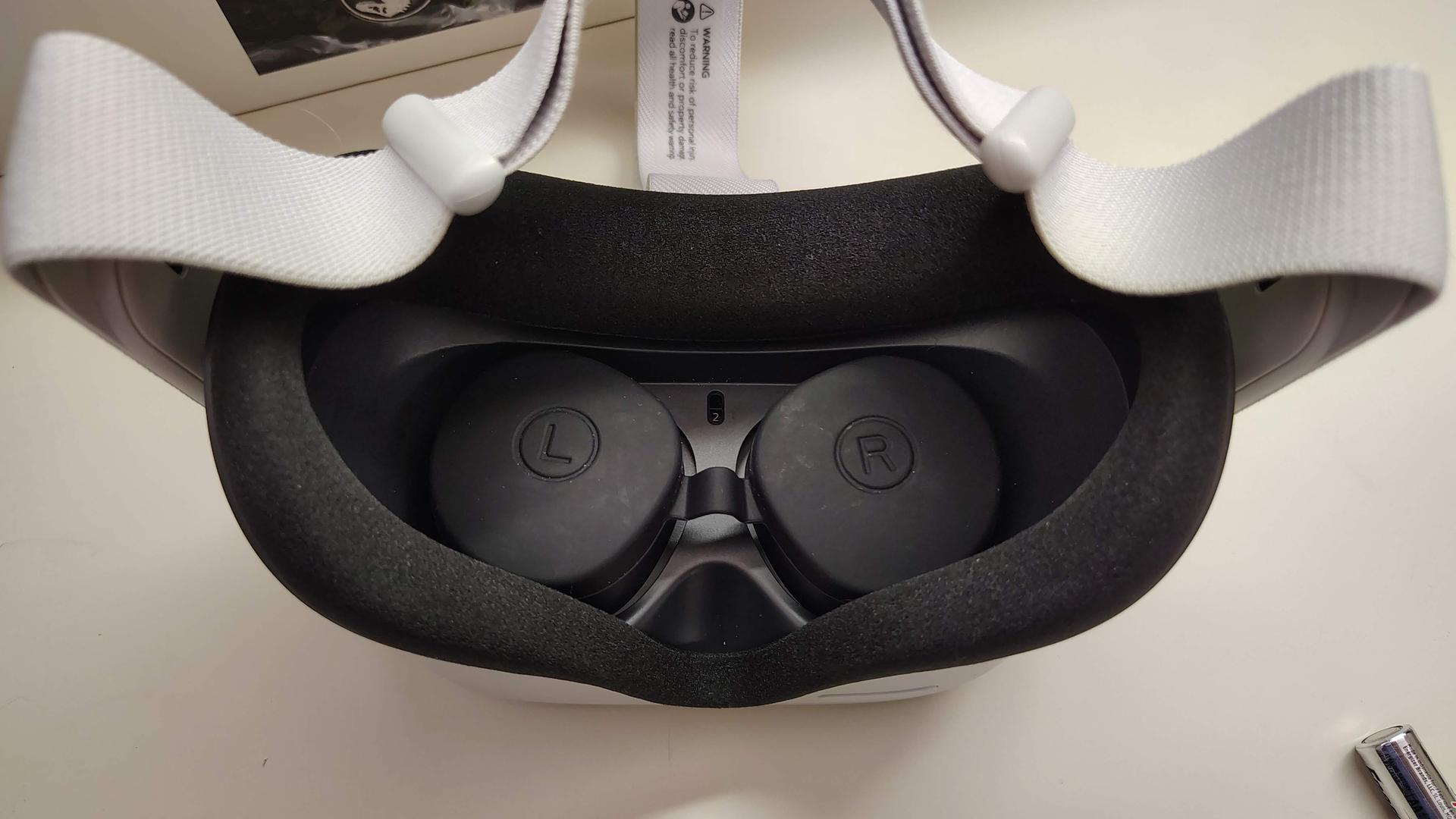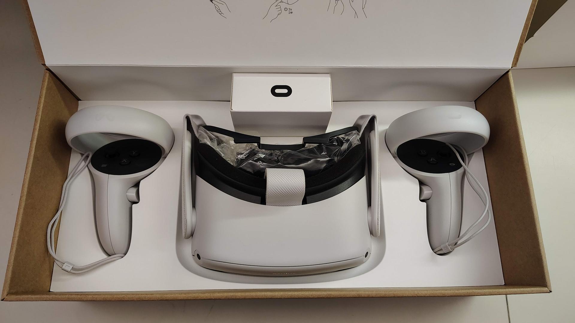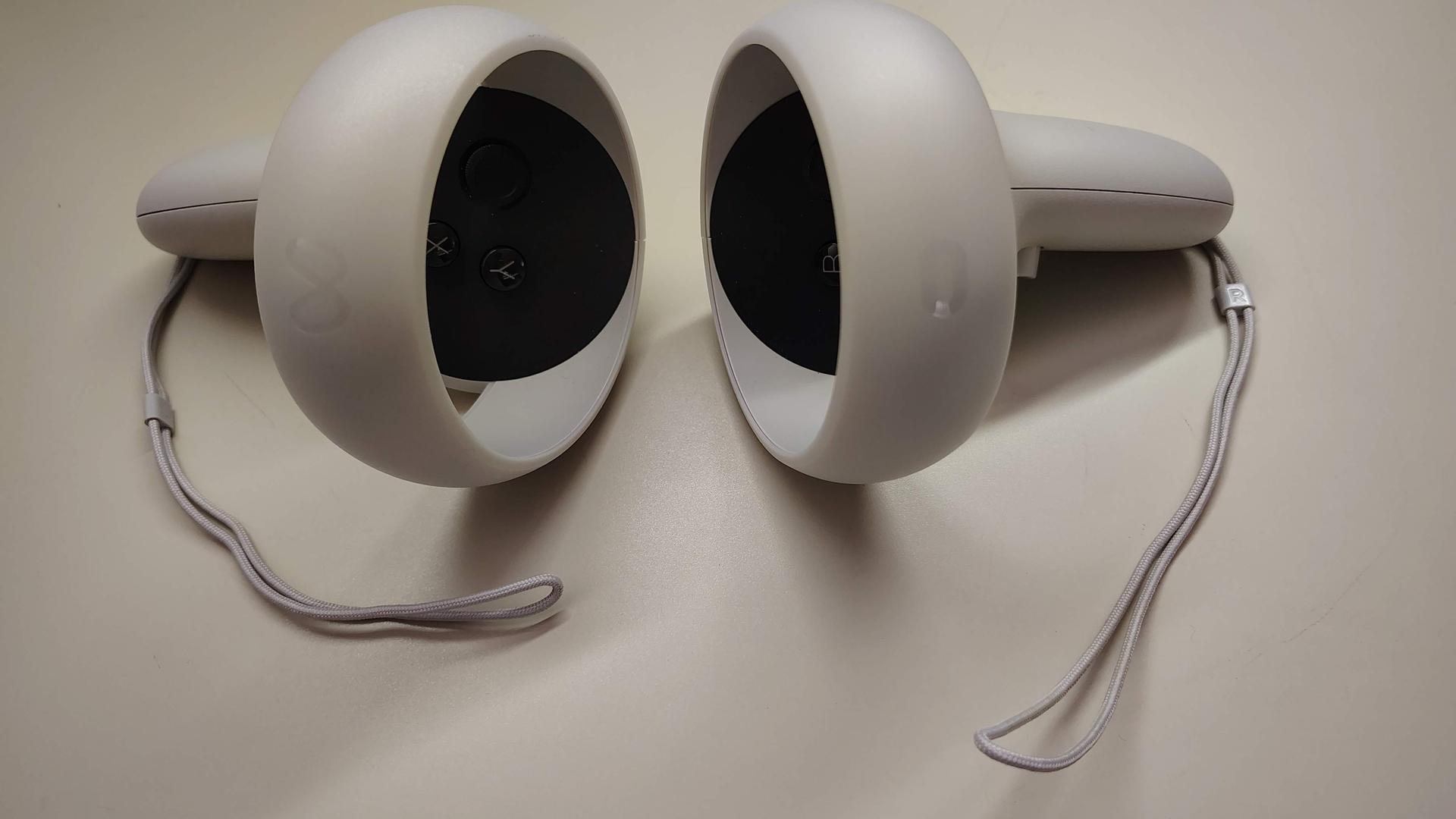 Left controller replaced with new controller under warranty, so logo on left controller is Meta logo (right controller is original, with Oculus logo).