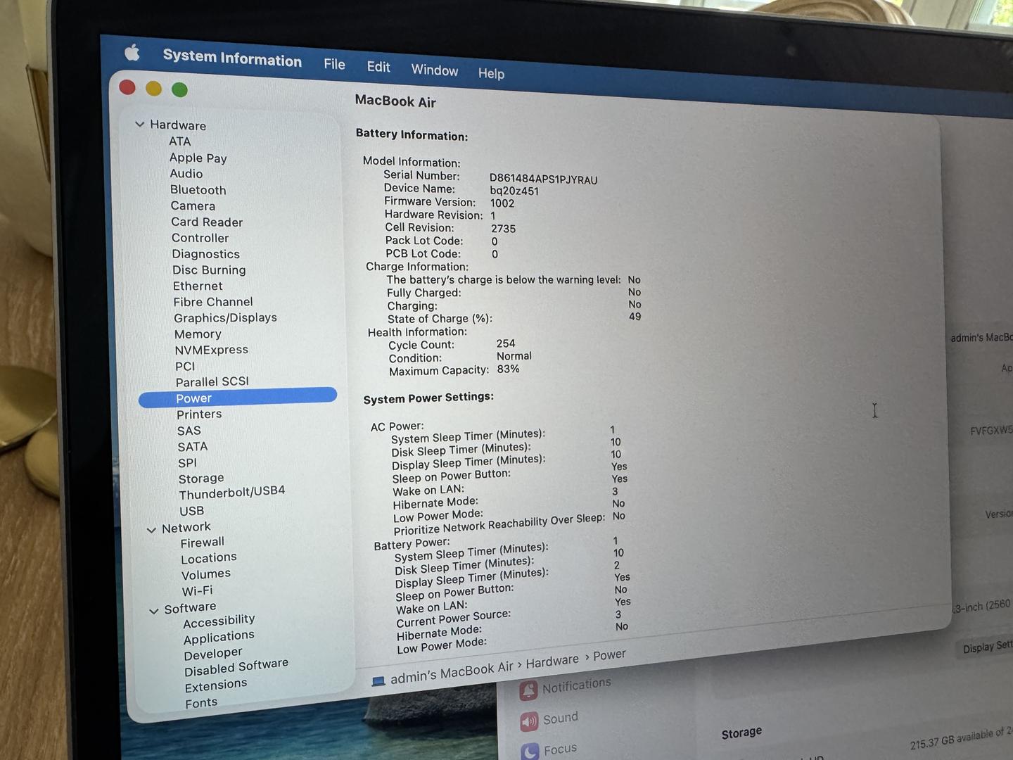 Battery Cycle Count: 254 (Good)