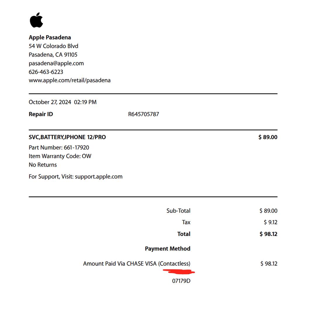 I had a screen and battery replacement in October 2022 and a second battery replacement in October 2024 (most recent receipt has been attached). Battery health currently sits at 93% with about 490 battery cycles.