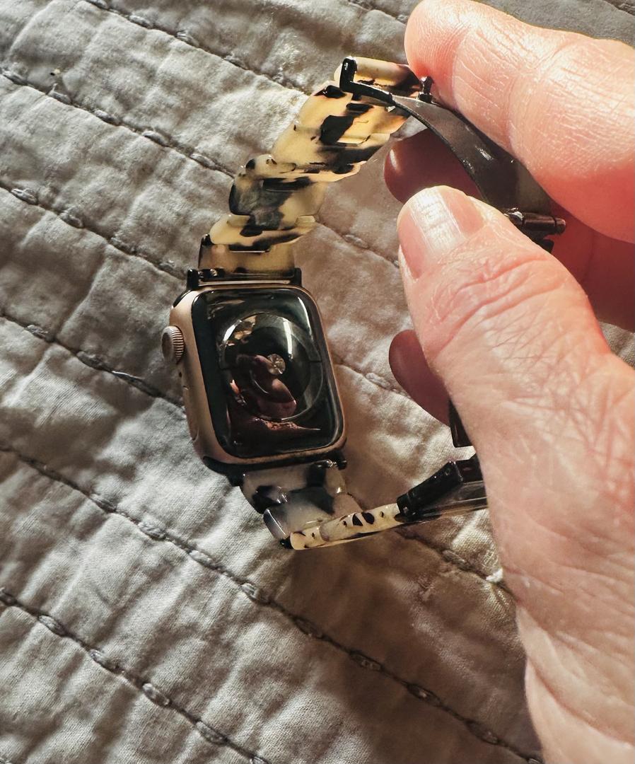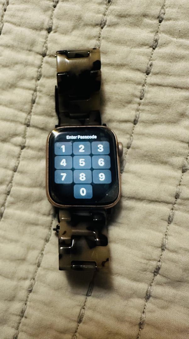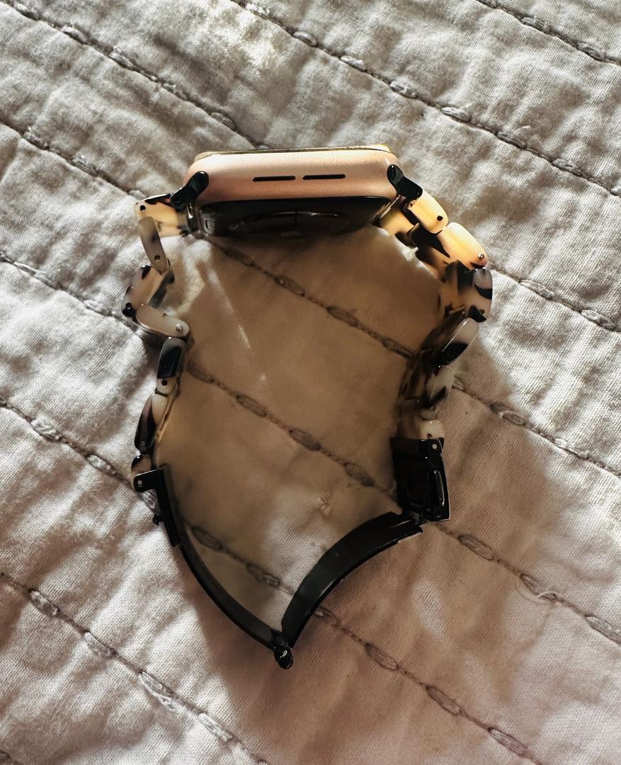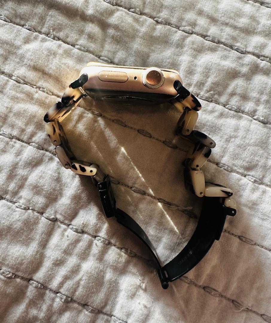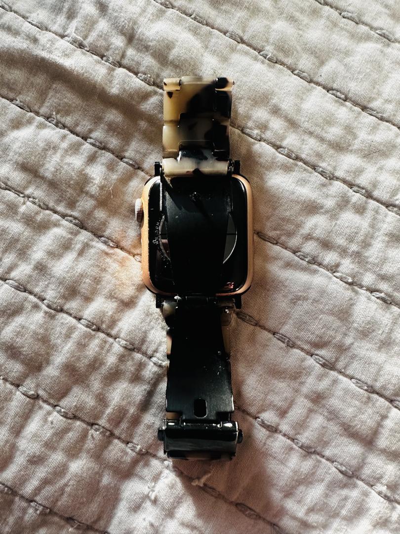 Selling my like-new Apple Watch, meticulously maintained and always protected with a screen cover—no scratches on the face. It comes with the original packaging, charger, charging block, and an extra screen protector. I’m also including a stylish tortoise band (originally purchased for over $30) that always gets compliments. Please note that the box lists the color and style of the watch face as gold aluminum and but it's more of a rose gold. This watch looks fantastic, works perfectly, and is ready for its next owner!