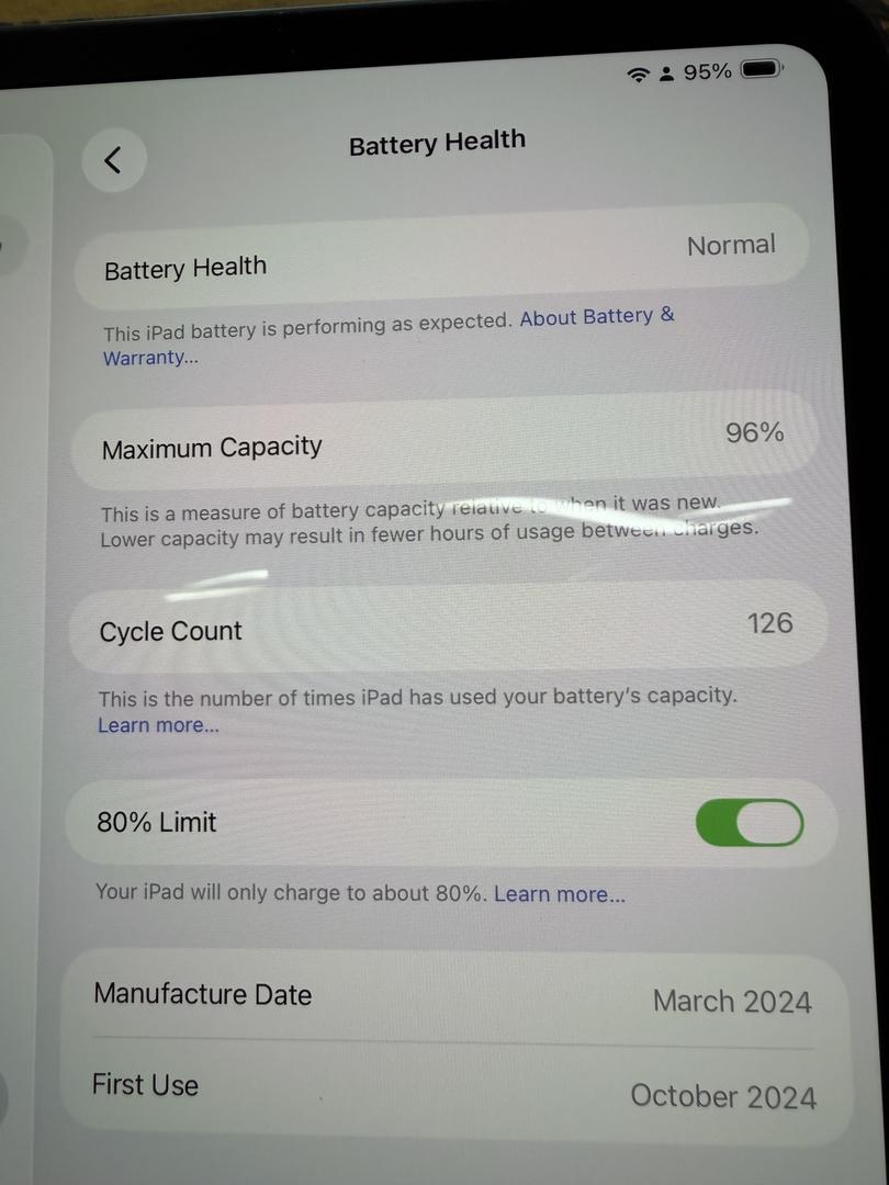 Please read my reviews. 11 inch wifi only, 96% battery life, 126 cycles, 256 GB memory. REAL leather case. Original box, charger & cord. Model A2836.
