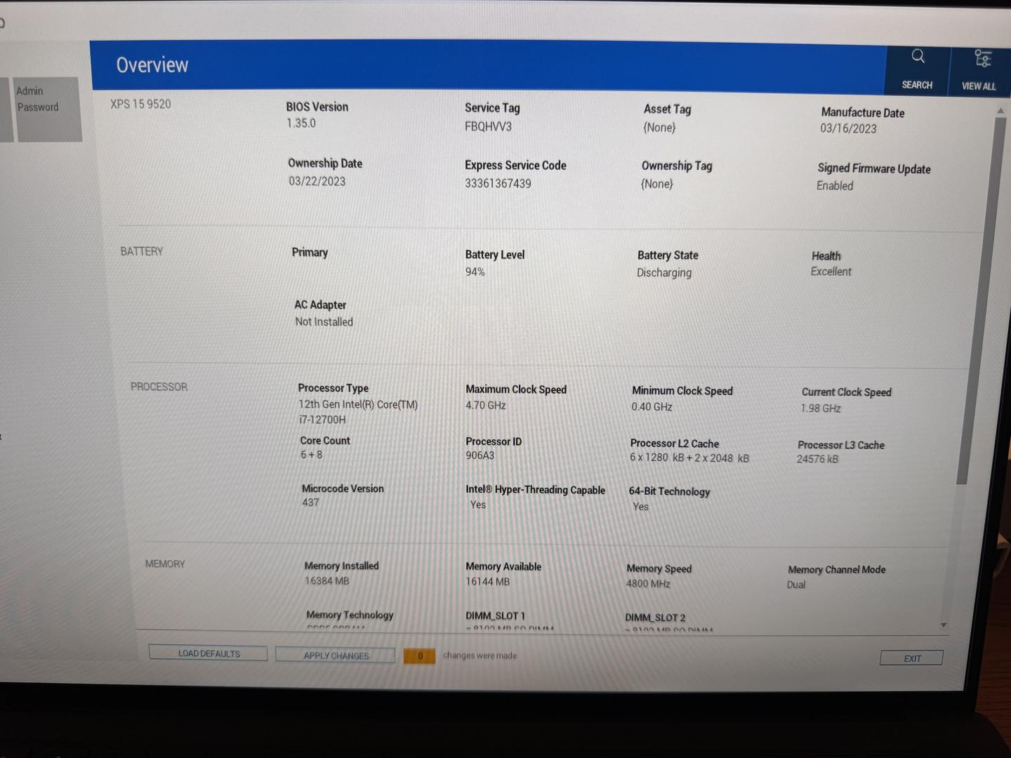 XPS 15 9520 2023 with stock 512GB SSD and 16GB of ram.