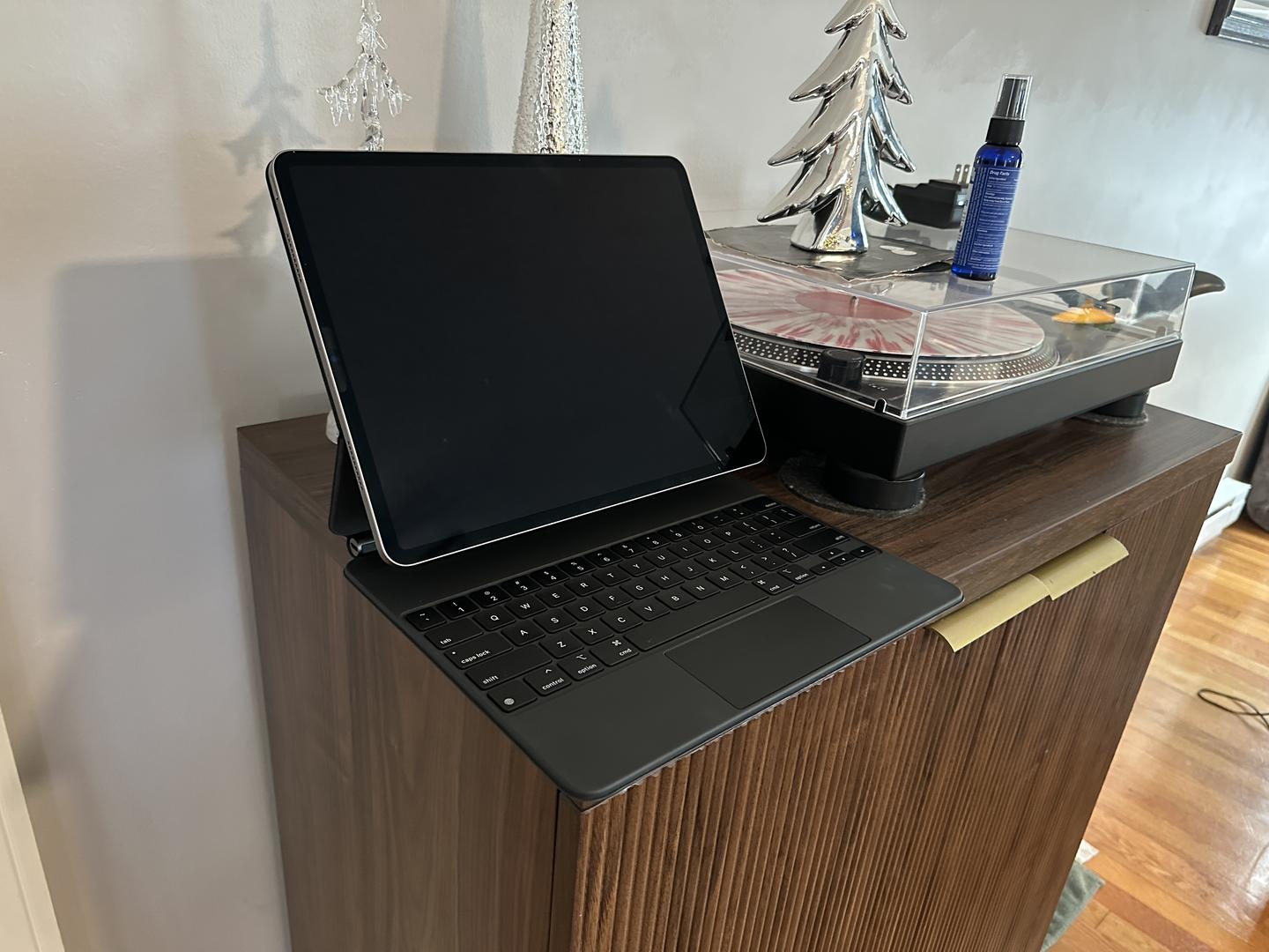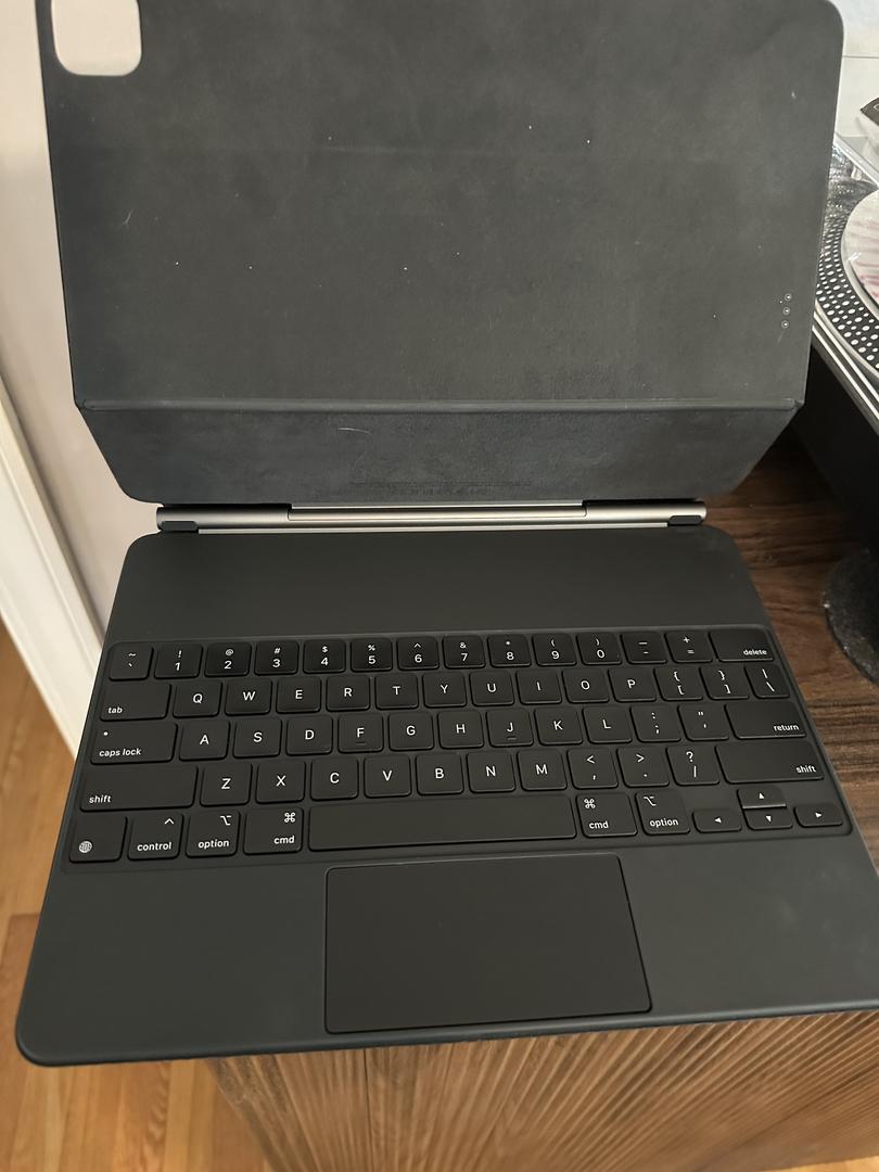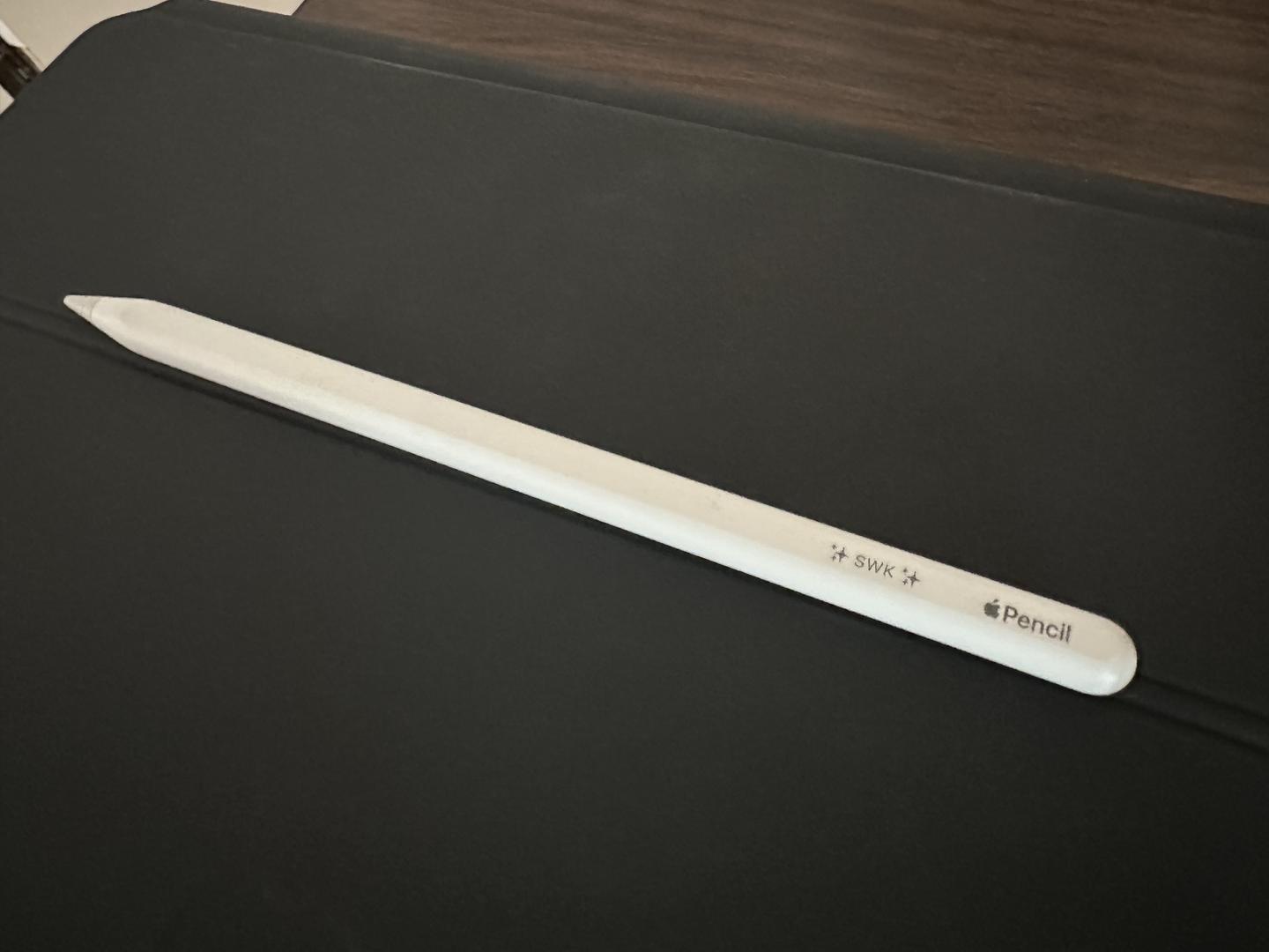 This iPad Pro (12.9-inch) (6th generation) is barely used and in mint condition. The sale includes the Magic Keyboard (good condition) and the 2nd gen IPad pen (mint condition). Buyer should be aware both Pen and iPad have factory inscribed “swk” - (sealed with a kiss?).