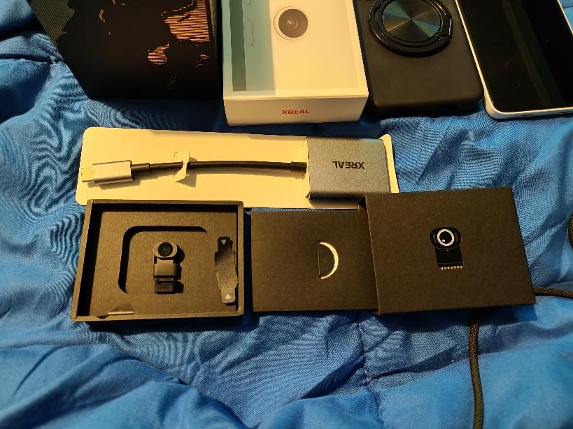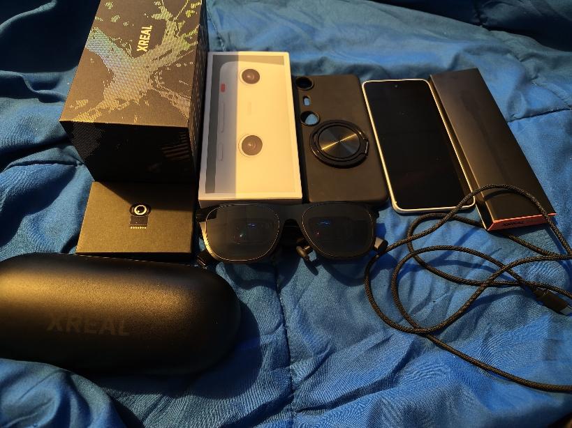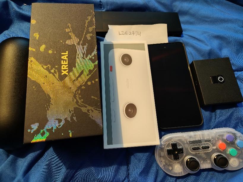 Selling a like new Xreal One Pro, was purchased directly from Xreal a little over a month ago, comes with the glasses themselves, the xreal eye, the xreal beam pro which is the 256gb of storage, 8gb of ram 5G version, as well as a case for the beam pro, the genki 8bitdo controller and the xreal hub for connecting your glasses to your device while also charging it at the same time. Everything is in like new condition and will be shipped fast via USPS priority.