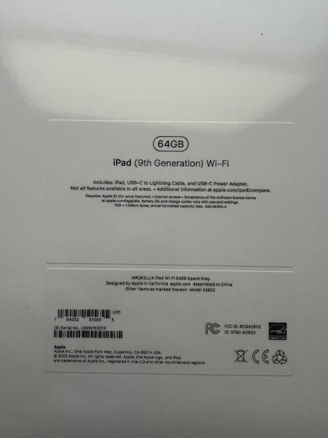 (NEW, UNOPENED) Apple iPad (9th Generation) 64GB Wifi only - Gray