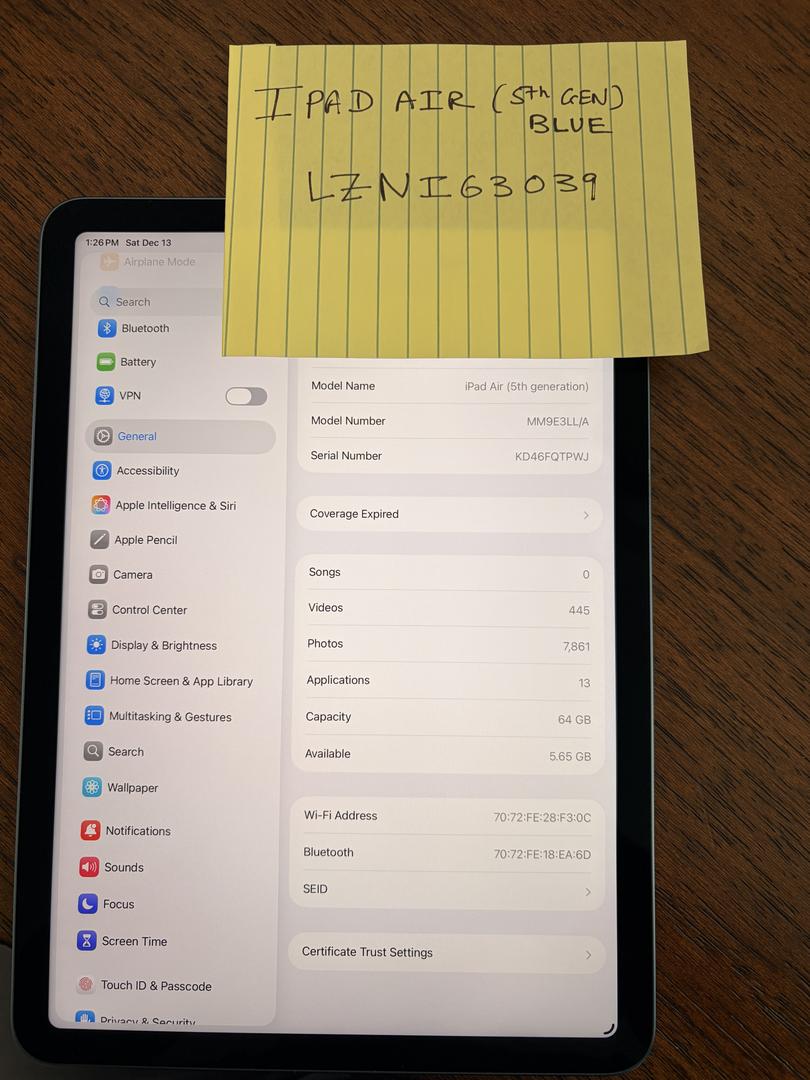 MINT condition iPad Air 5th Gen in Blue. Always stayed in fully enclosed case, no signs of wear and tear. Excellent battery health.