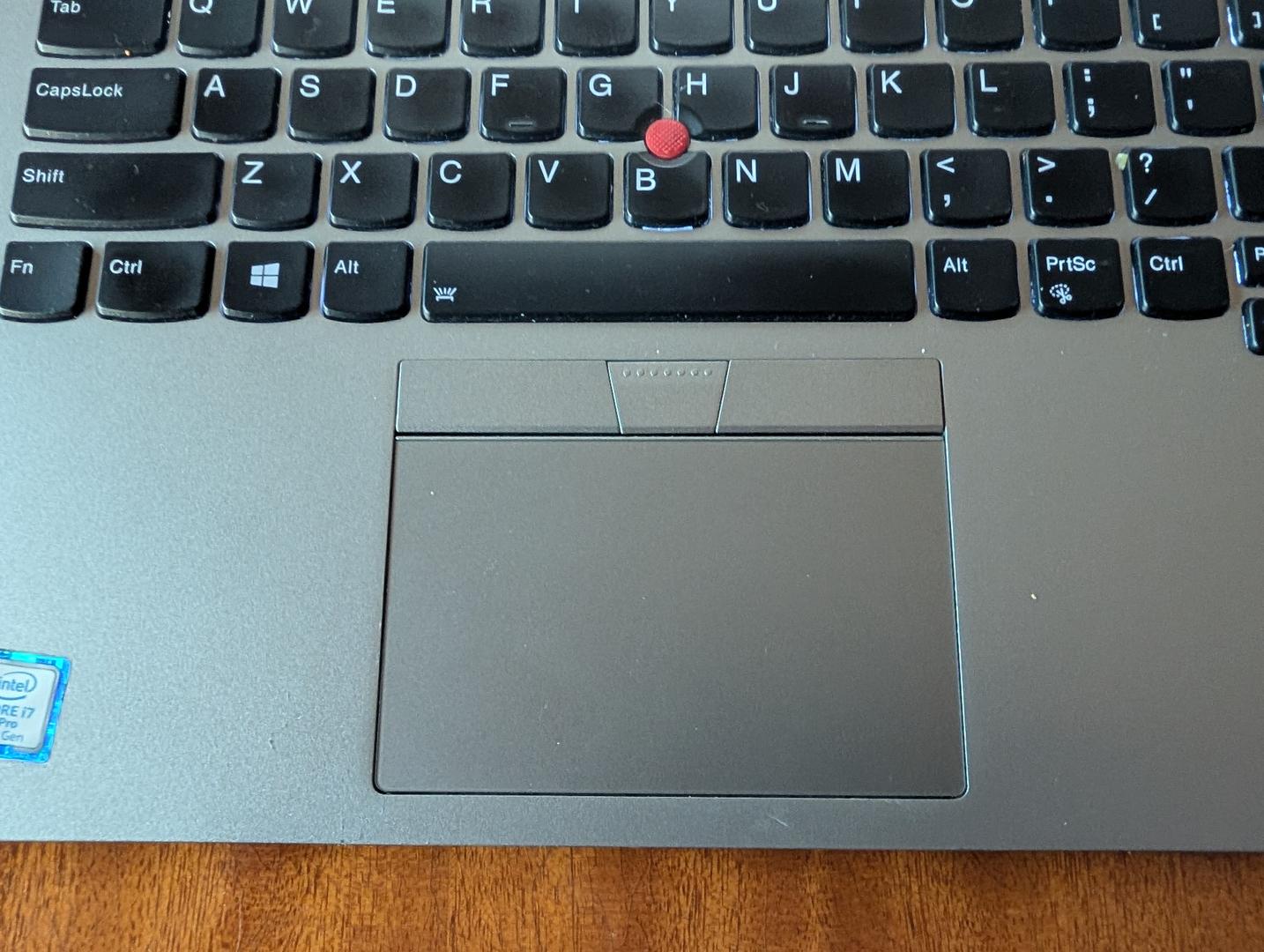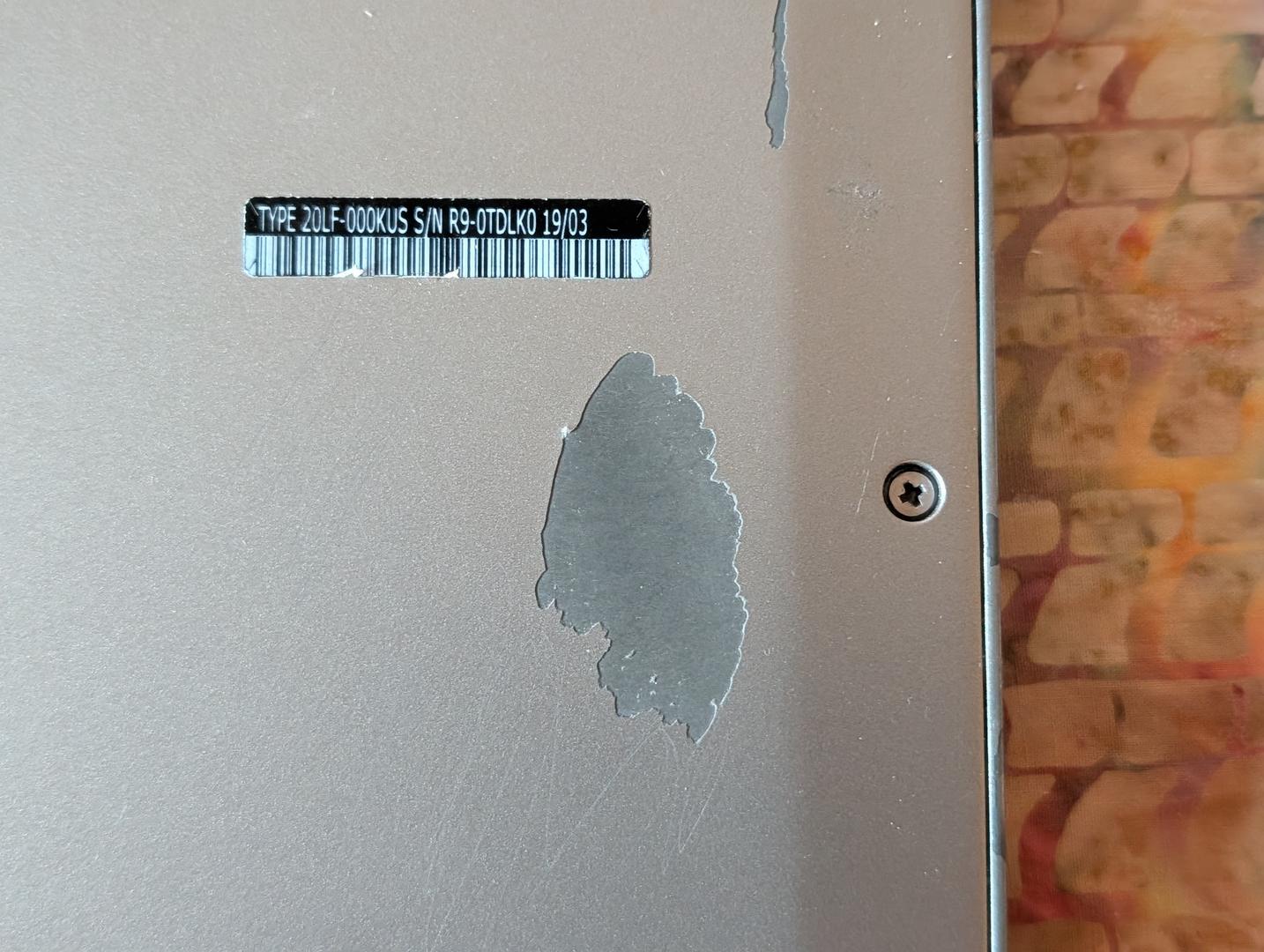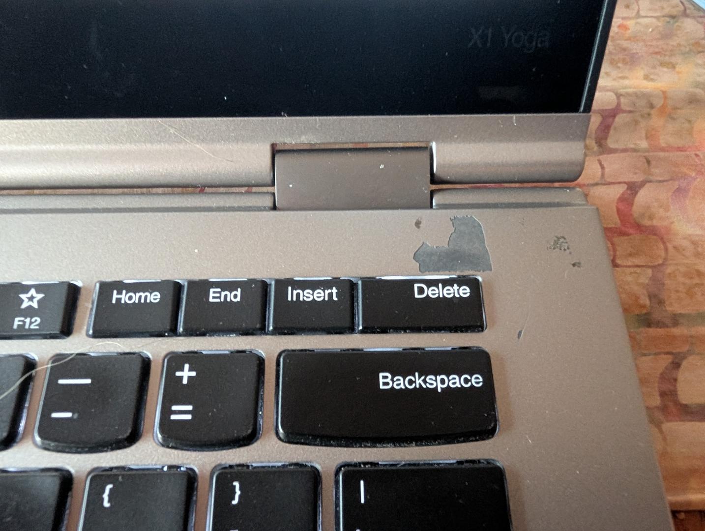 Two small areas where the carbon fiber has flaked off -- see photos. Otherwise, very good condition with very little wear on keys or top,back,sides. Includes original stylus and aftermarket 65W charger.