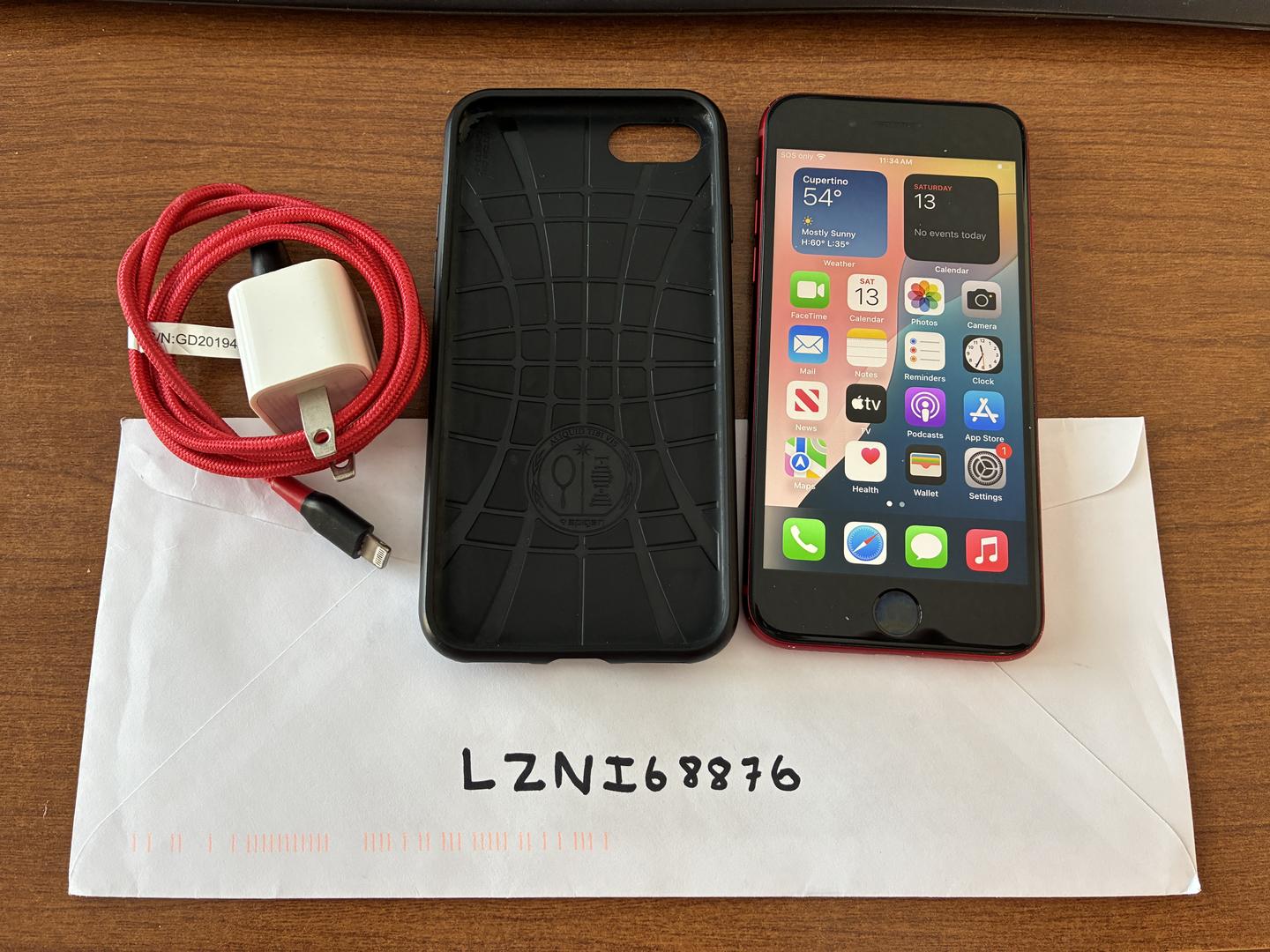 I will include a simple black Spigen case (as pictured) as well as a lightning charging cable.