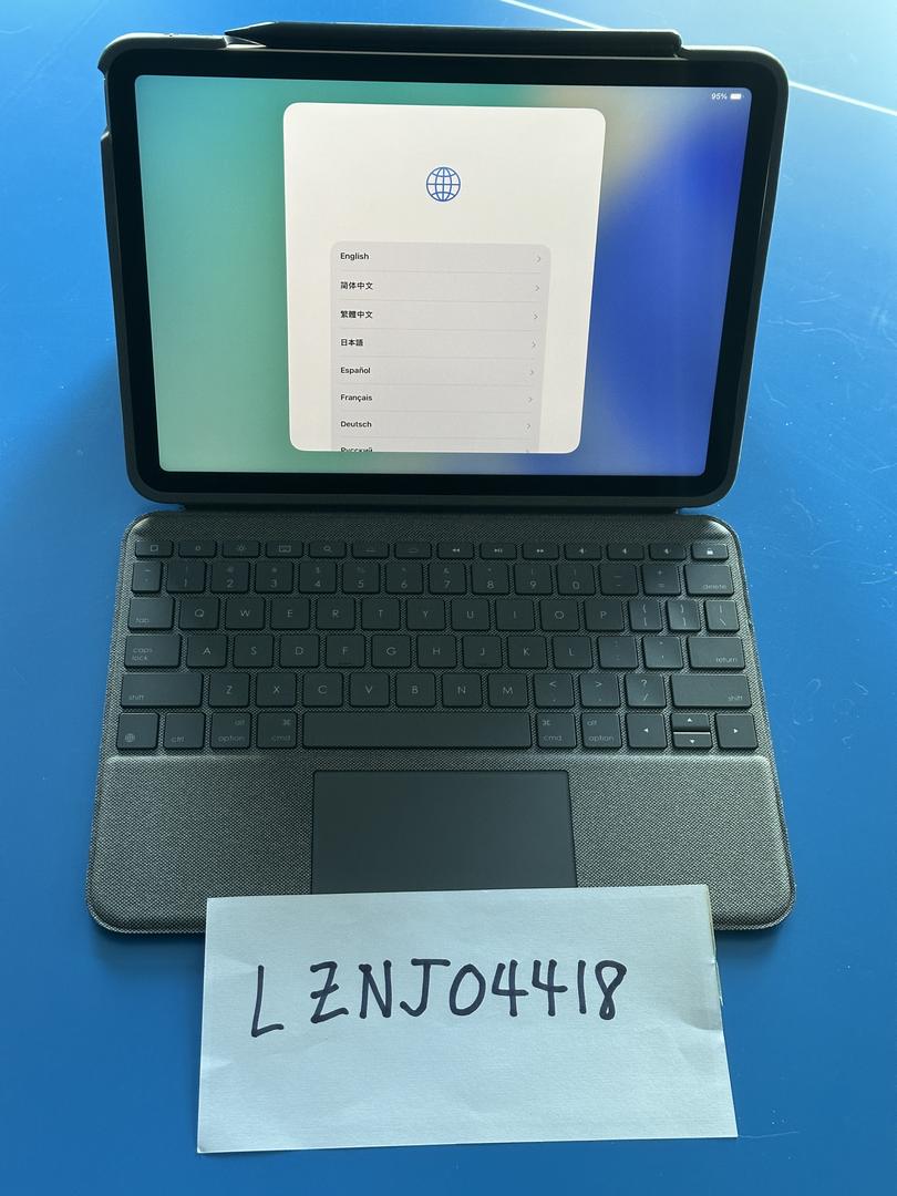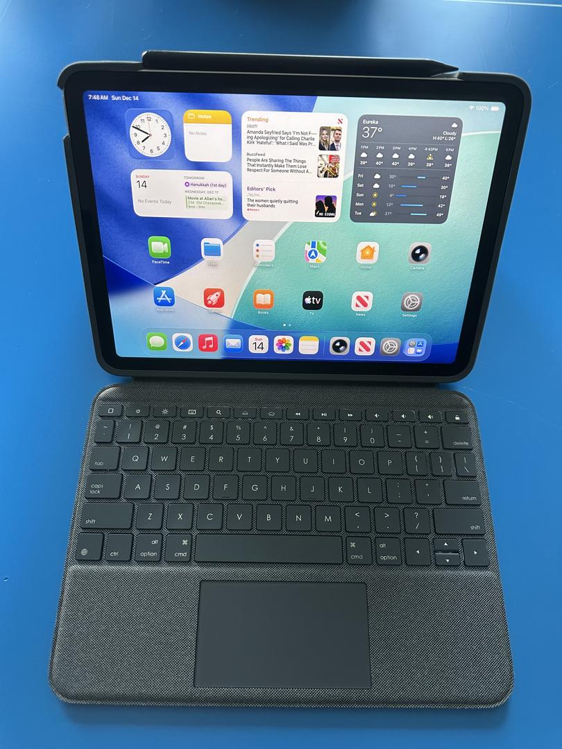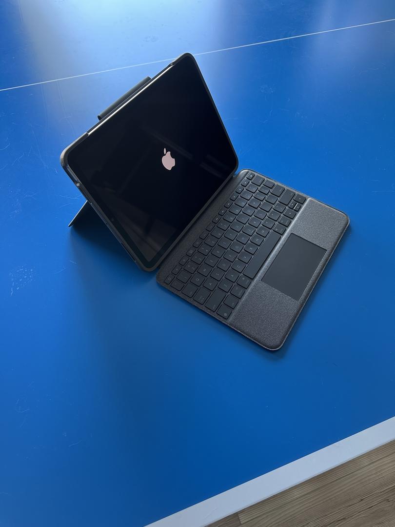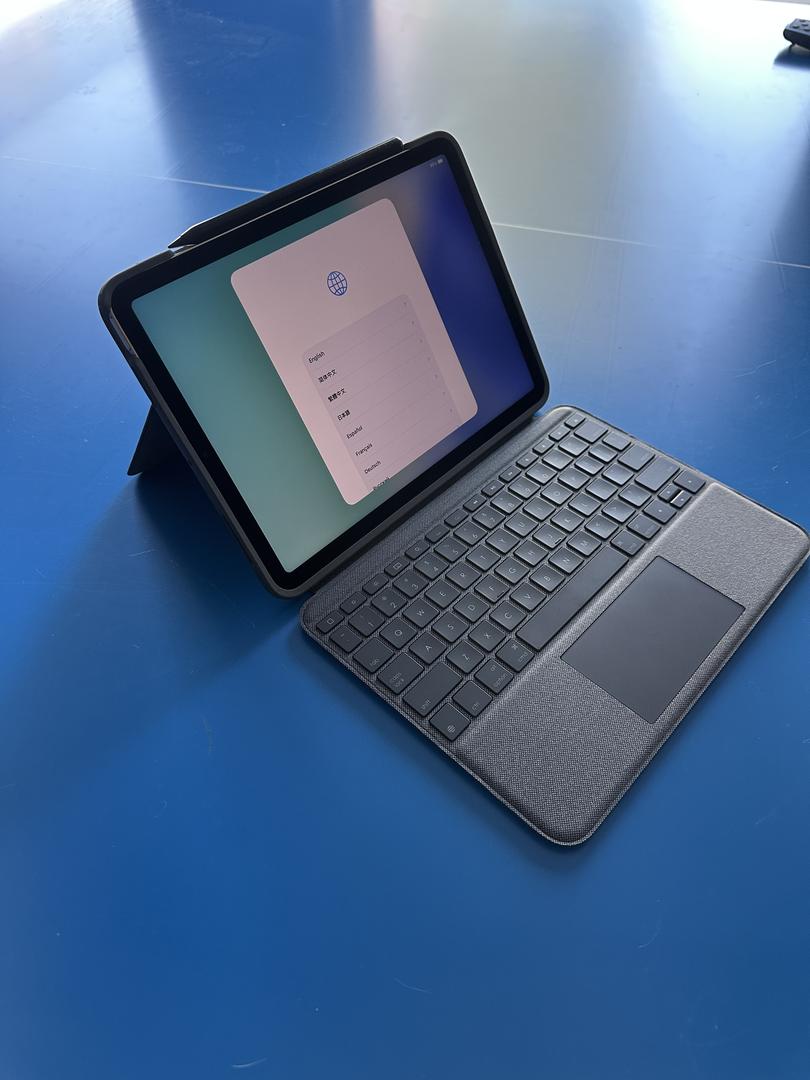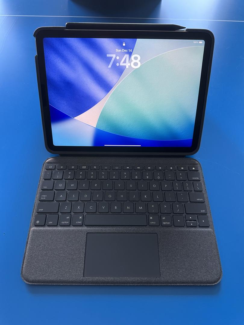 Fully reset iPad Air 5th generation with 64 GB of memory, generic Apple Pencil, Logi Folio Touch fully integrated case/back-lit keyboard, all in MINT condition with no damage noted on the iPad or case/keyboard. Battery health tested at 93% (excellent). Comes with Apple charger and cable in the original Apple box.