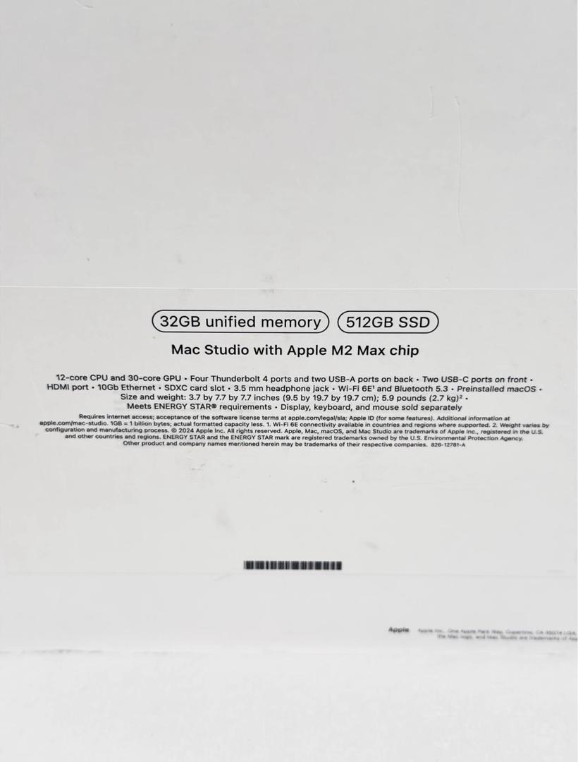 Selling my Mac Studio with M2 Max chip, 32GB unified memory, and 512GB SSD. The computer is in like-new condition with no issues whatsoever. Adult-owned, well cared for, and used in a clean, smoke-free environment.