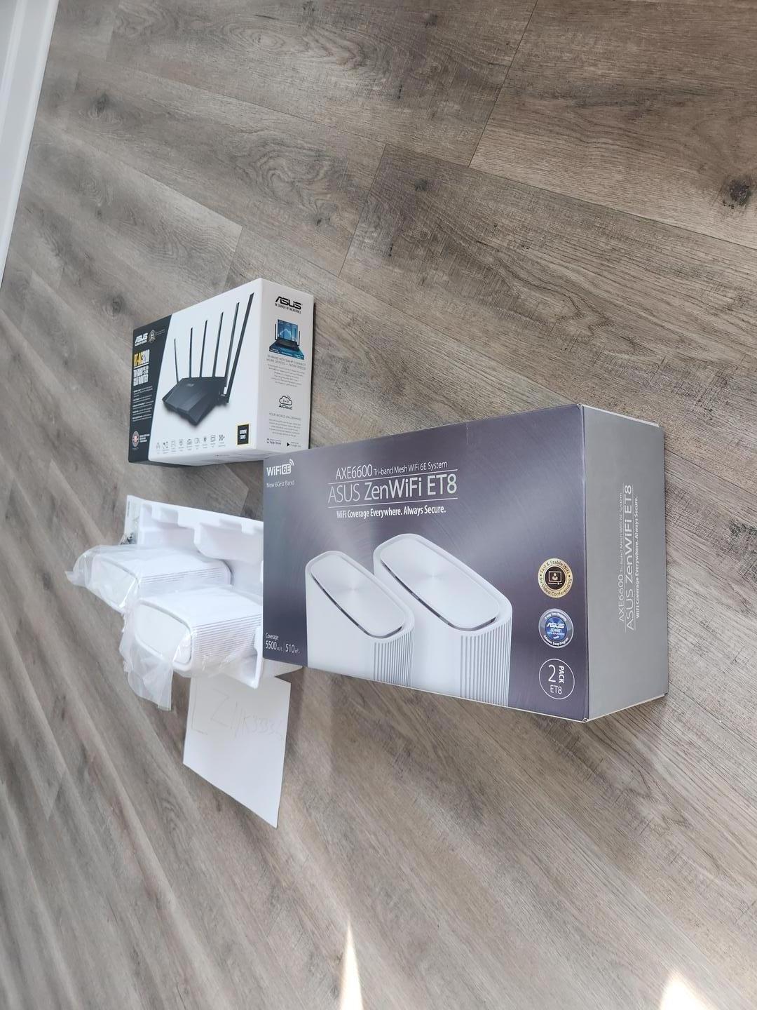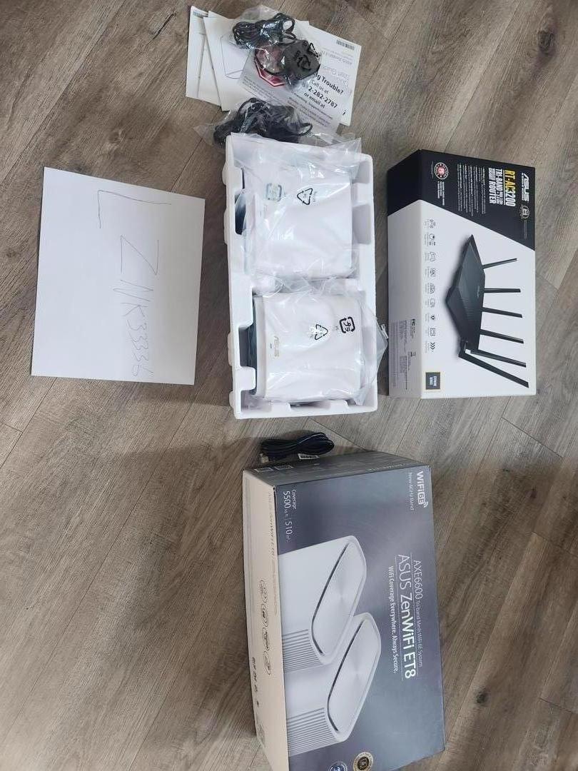 ASUS ZenWiFi AX6600 Tri-Band Mesh WiFi 6 System (XT8 2PacK) LIKE NEW!! Unit was unpacked, but was never really fully setup and used. Comes in original box ith all accessories. Addtional RT-AC 3200 router included!! (like new) included for free!!