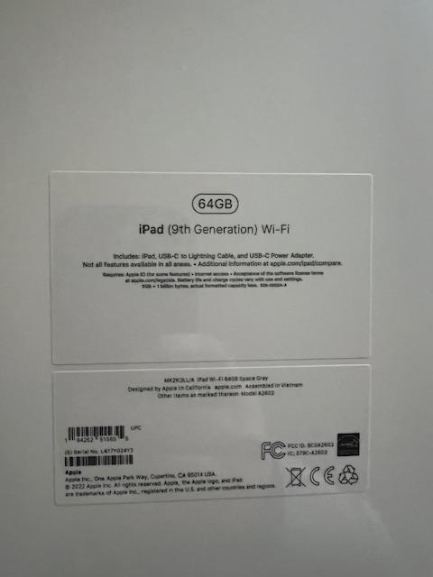 (NEW, UNOPENED) Apple iPad (9th Generation) 64GB Wifi only - Gray