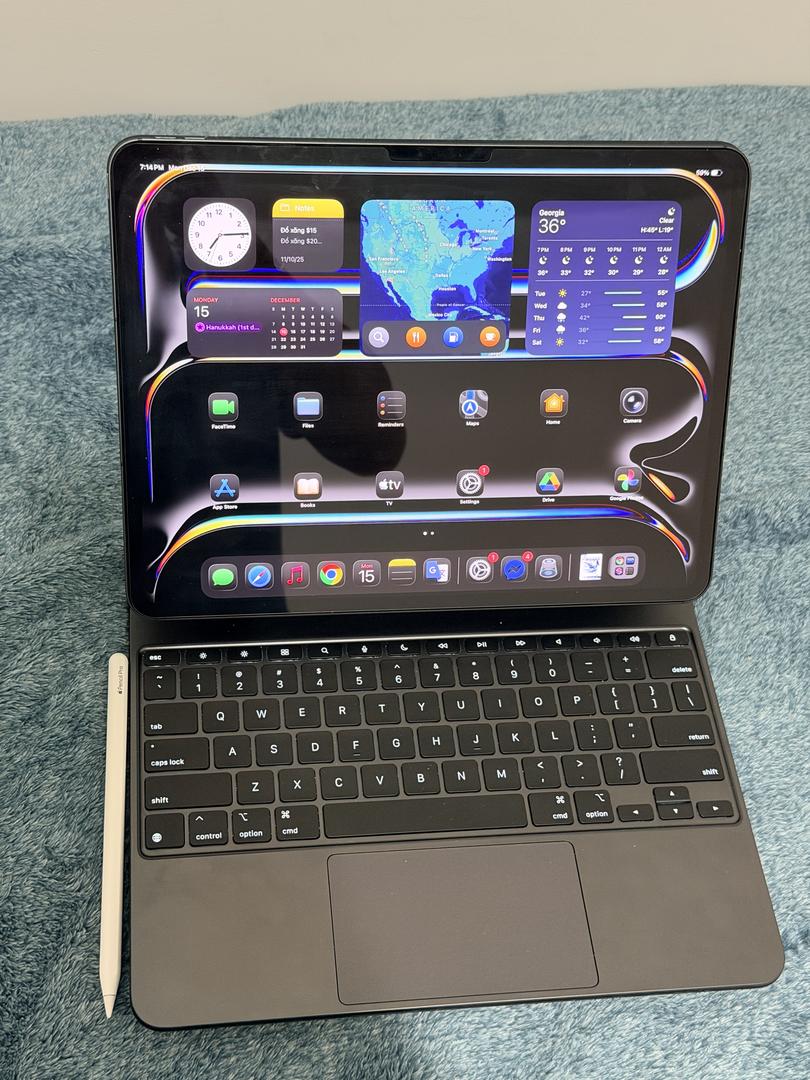 Comes with Apple Magic Key Board and Apple Pencil Pro.