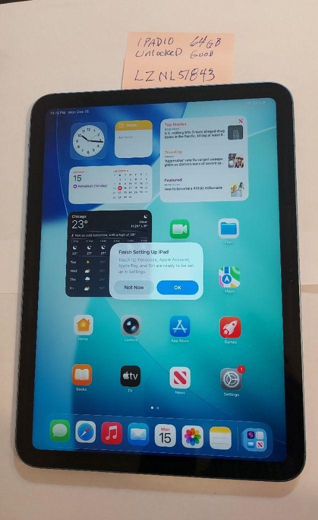 Ipad 10 blue 64 GB Unlocked Near Mint Condition