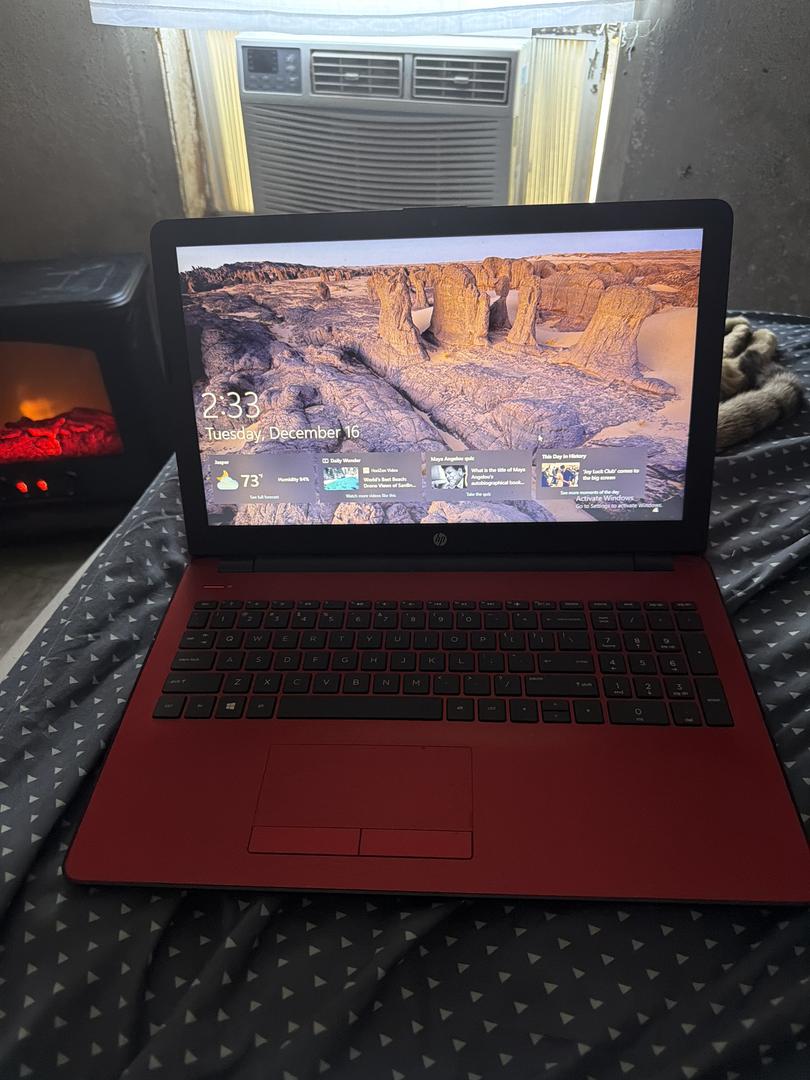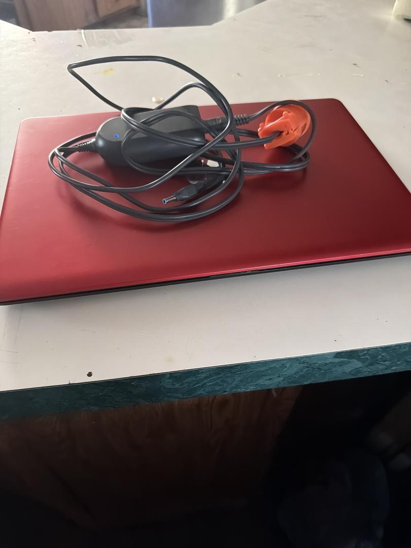 New labtop barely used it works perfectly fine powers on it has the charger and everything to it it’s black and red fully functional and only used twice