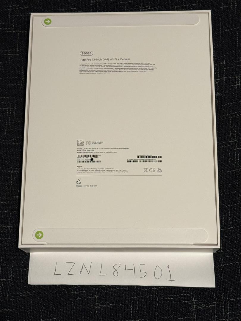 Brand new Apple iPad Pro 13-inch (M4) with 256GB storage, Wi-Fi + Cellular, in Silver.