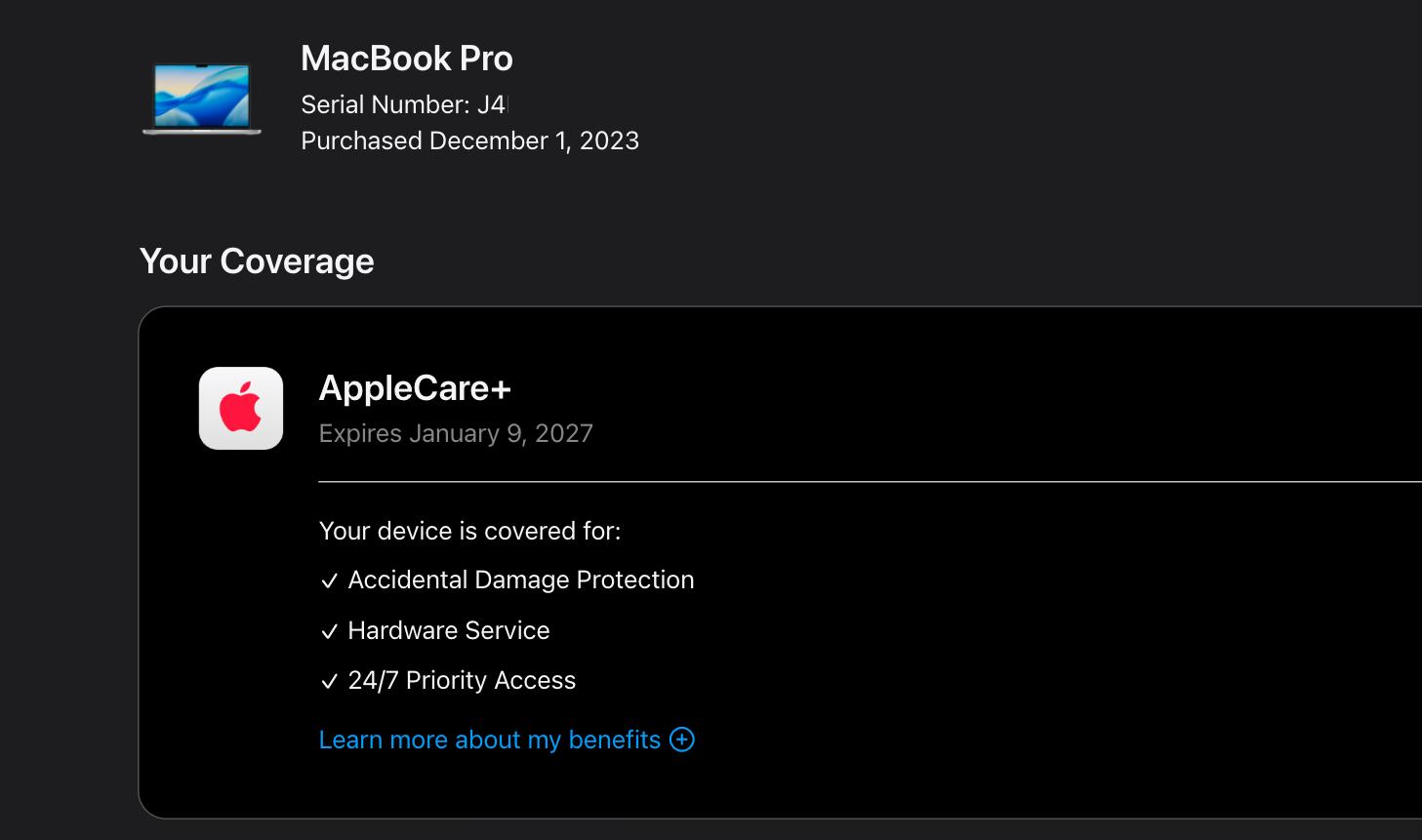 Has Applecare+ until January 9, 2027