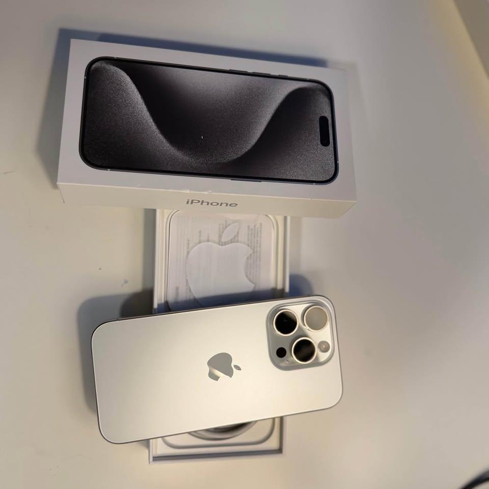 iPhone 15 Pro (128GB) - White Titanium - UNLOCKED! 90% Battery Health + Accessories