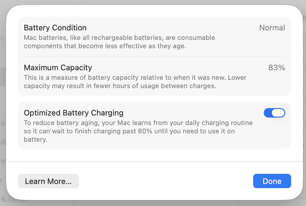 Battery Condition: Normal; Max Capacity: 83%. photo added.