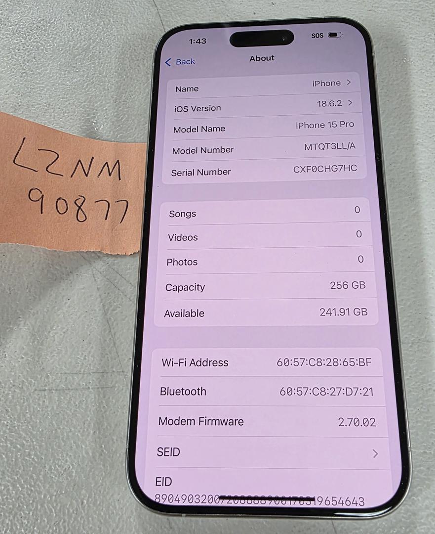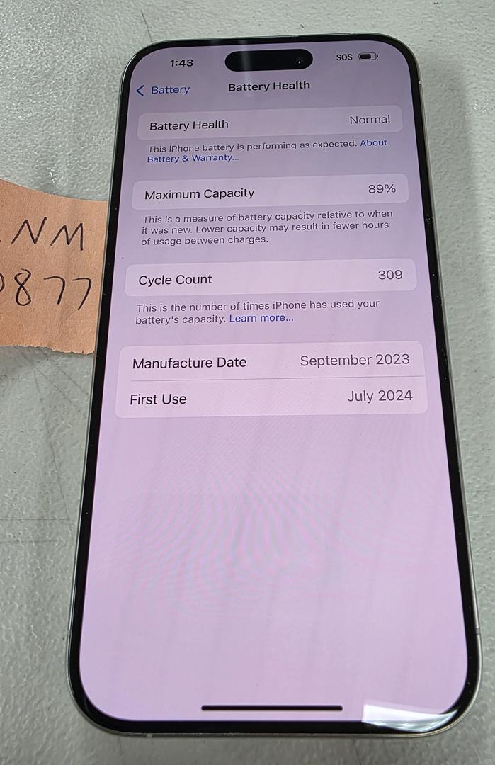 **89% BATTERY HEALTH*** Apple iPhone 15 Pro 256GB White Unlocked A2848