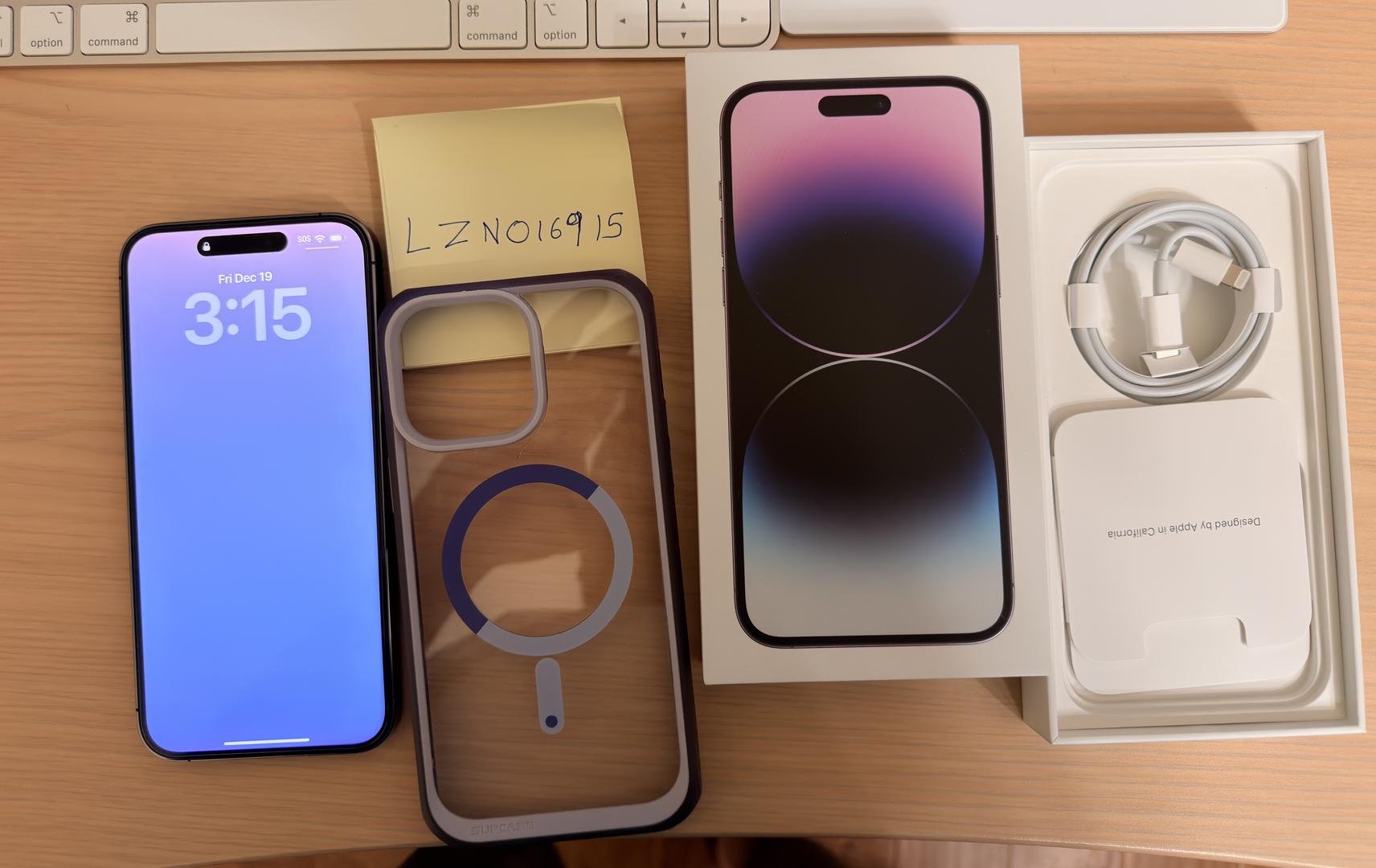 Excellent condition IPhone 14 PRO MAX in pristine condition. Had the case and screen protector on the phone since day 1. Battery percentage at 85%. Comes with purple Supcase case and pre-installed screen protector. Comes with original box and un-used charging cable.